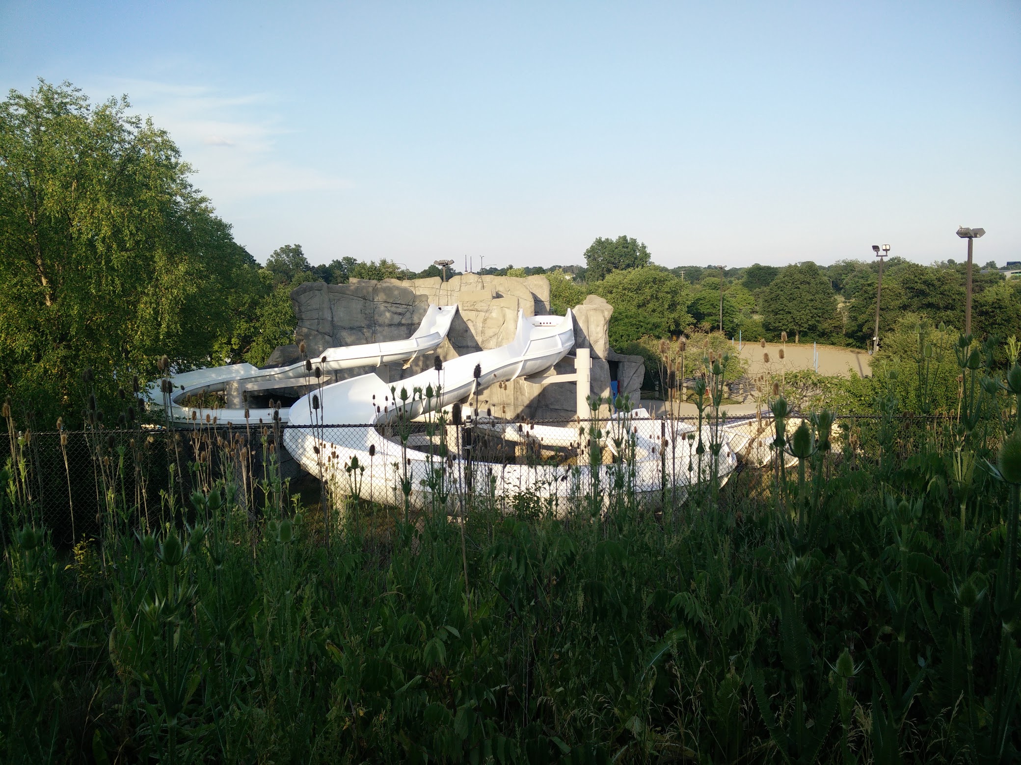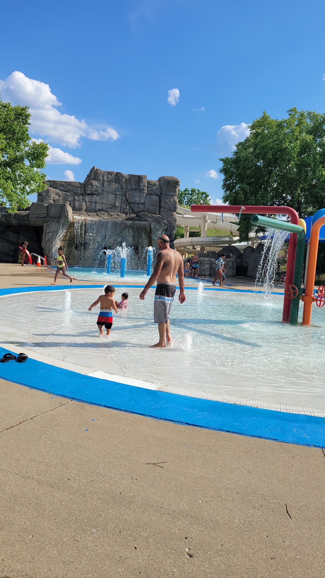 Our pool was closed for the week, so we came here one day right when they opened. At first they weren’t going to let us buy tickets because they weren’t open, but people with passes were already inside. It was 7 min to opening & I was like are you being serious? They did let us buy, but made us wait at the entrance. They literally would not let us in until the clock precisely struck opening time. There were enough loungers when we got in, but they were old and uncomfortable. There was zero organization to the pool deck. Chairs and loungers were thrown about facing in all directions. Way too many sitting chairs and not enough loungers. The pool temp was warm. I didn’t like that the slide line/entrance & exit is not visible from most of the park, making it hard to keep an eye on older kids while allowing independence. Bathrooms were disgusting and smelled. Food was meh. They just order pizza from Benito’s then overcharge you for it. Chicken tenders weren’t good. Luckily our pool doesn’t have to close for such an extended period of time, but I don’t believe I’ll ever come back. $50 for 2 people.