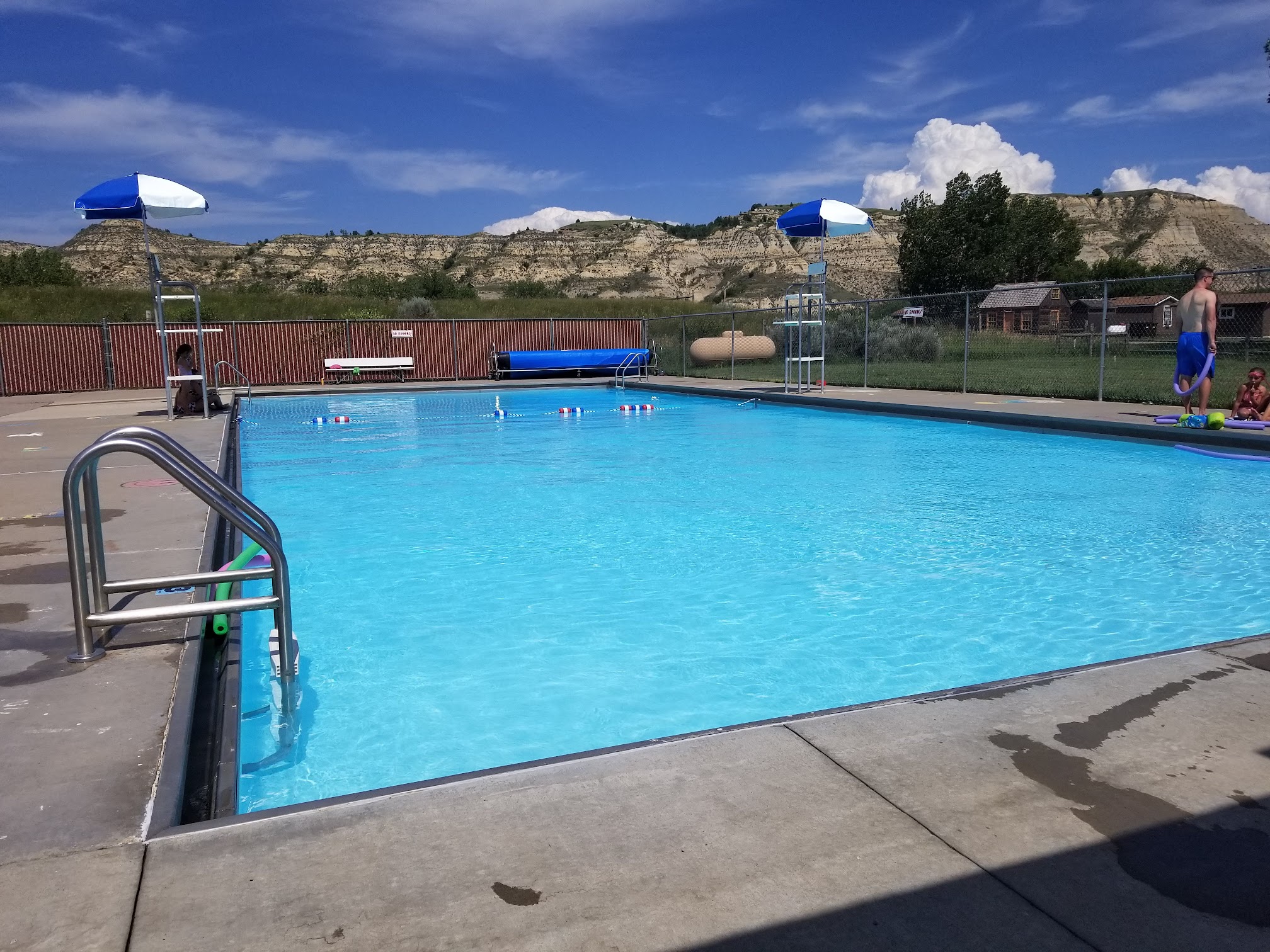 The Medora Swimming Pool, located at 3385 Pool Dr, Medora, ND, is a public outdoor aquatic facility serving the community primarily during the summer months. It offers a recreational space for swimming, relaxation, and family fun, typically featuring amenities suitable for various age groups, such as main swimming areas and potentially shallow sections for children.