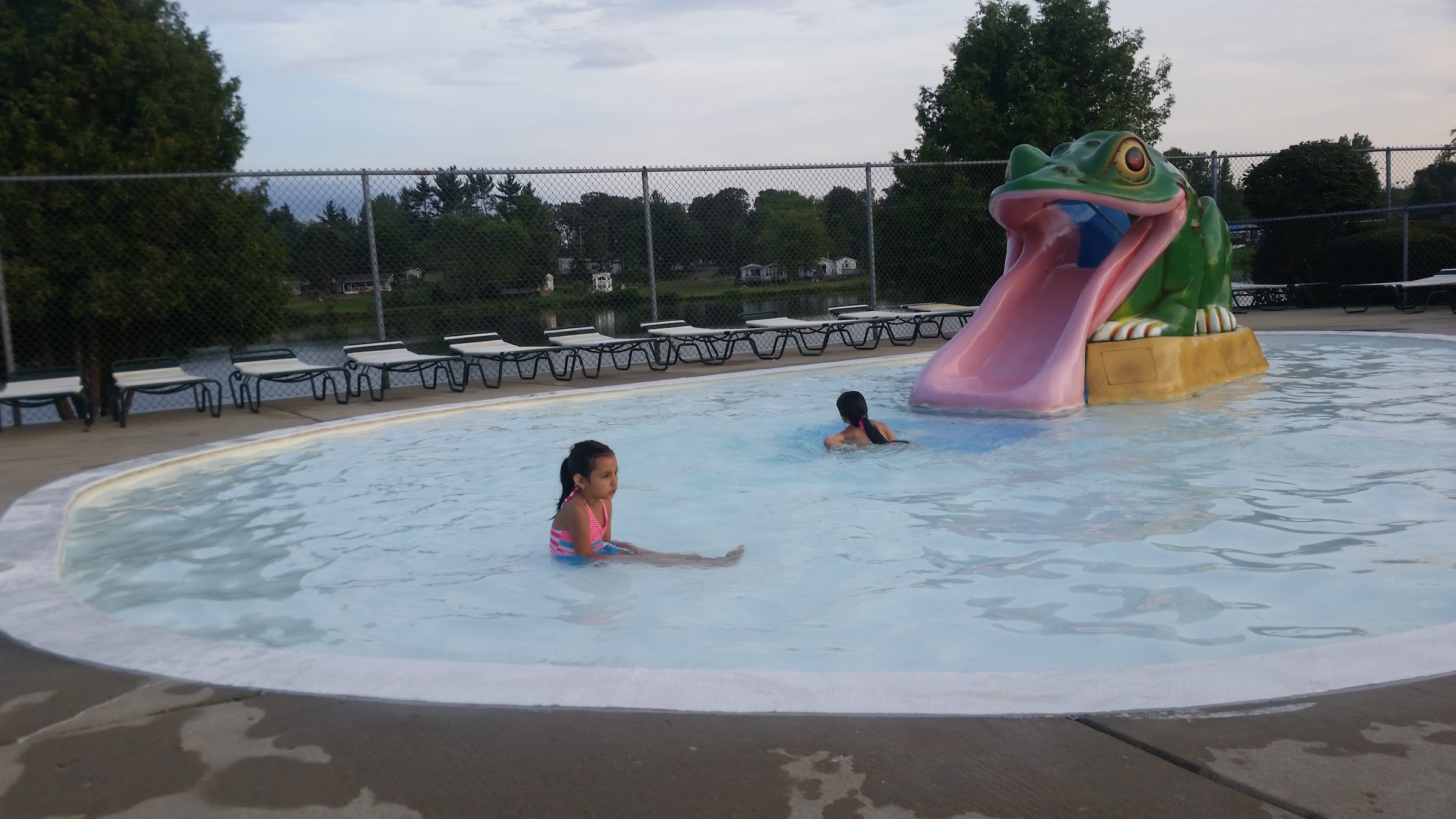 Nice spacious pool with a deep end. Water slide is small but has a good kick to it.
