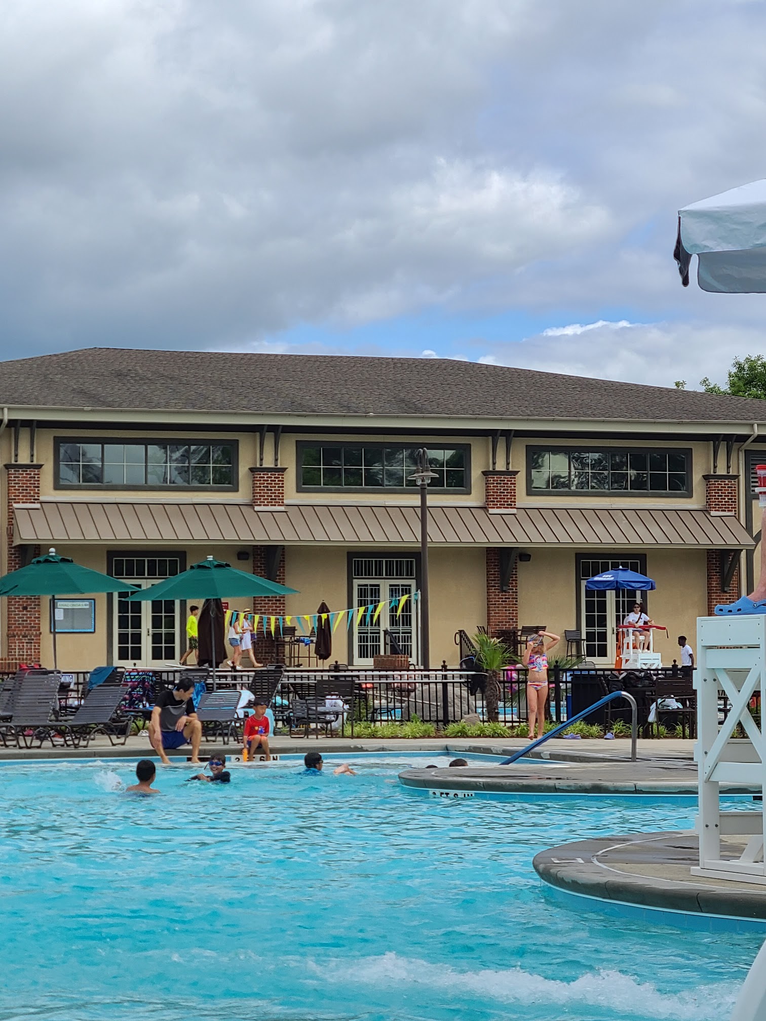 Recreation center with a pool, a basketball court, and a clubhouse hosting family events.