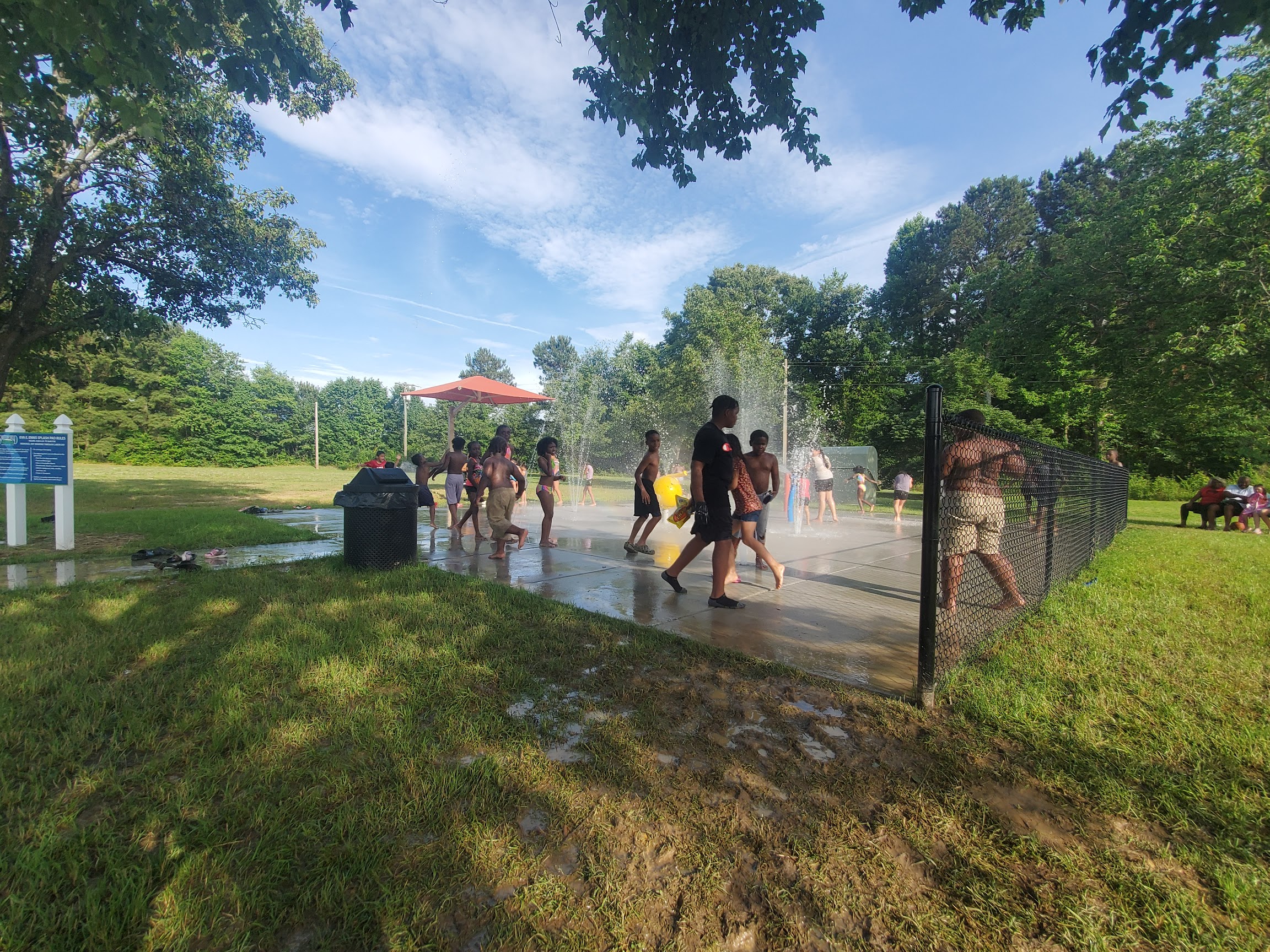 Great splash pad, lots of features and has picnic tables with umbrellas! The only thing is the seating fills up fast so you better get there early to nab one!
