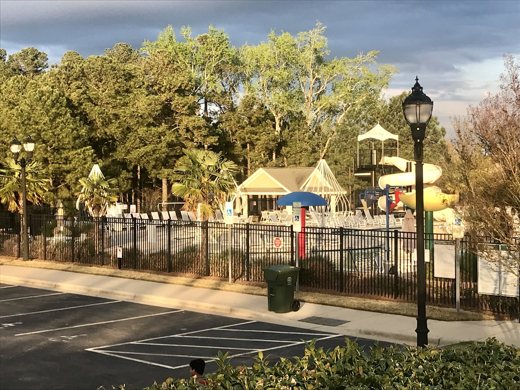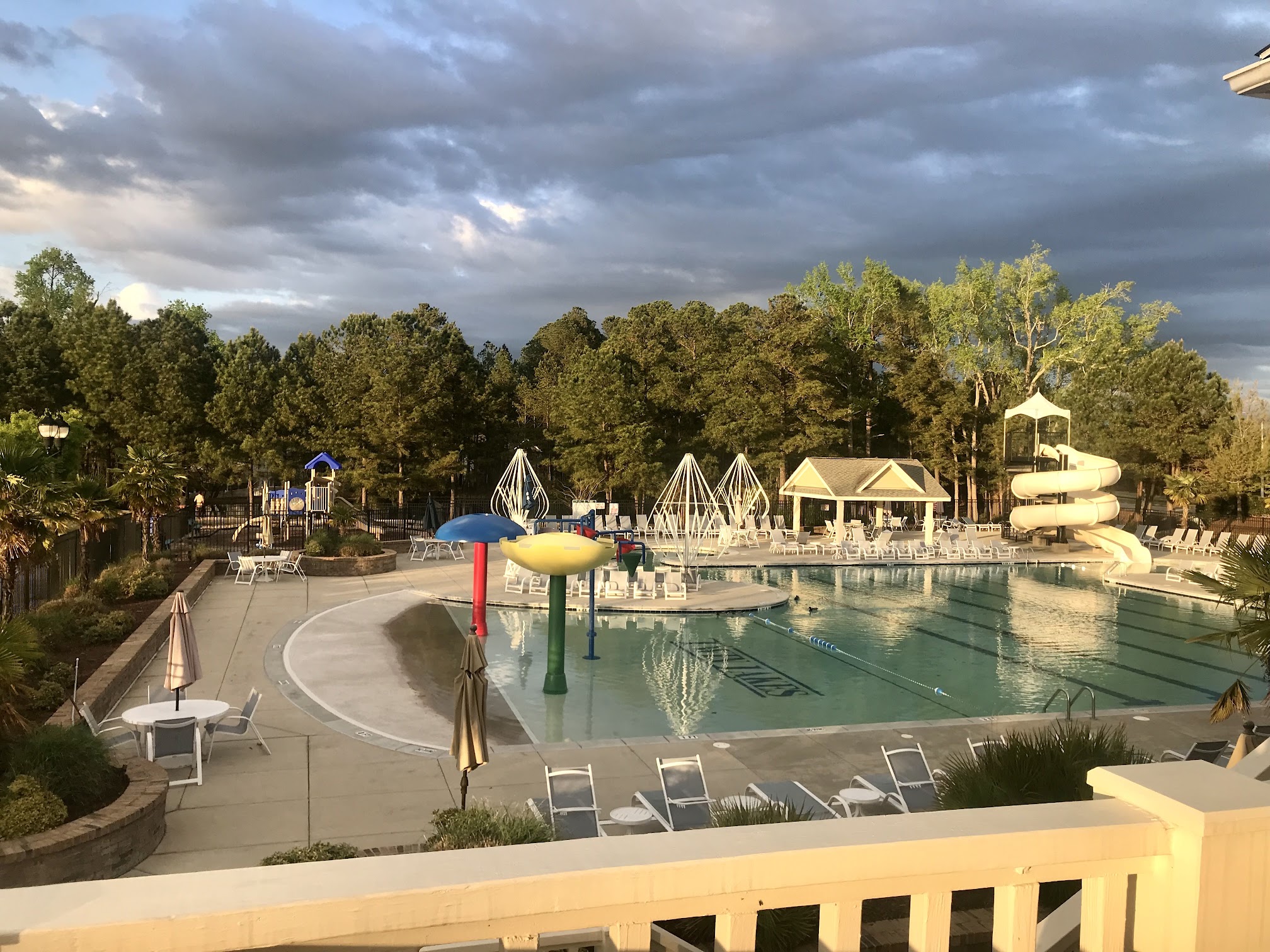 This is a very nice community pool. There are different areas to interest all swimmers. The slide is something I wish I could have had when I was a kid. The splash pool is great for toddlers. The shaded area in the middle is great for parents wanting to watch kids closely. The lap lane is perfect for those looking for exercise. The water sprays are refreshing.