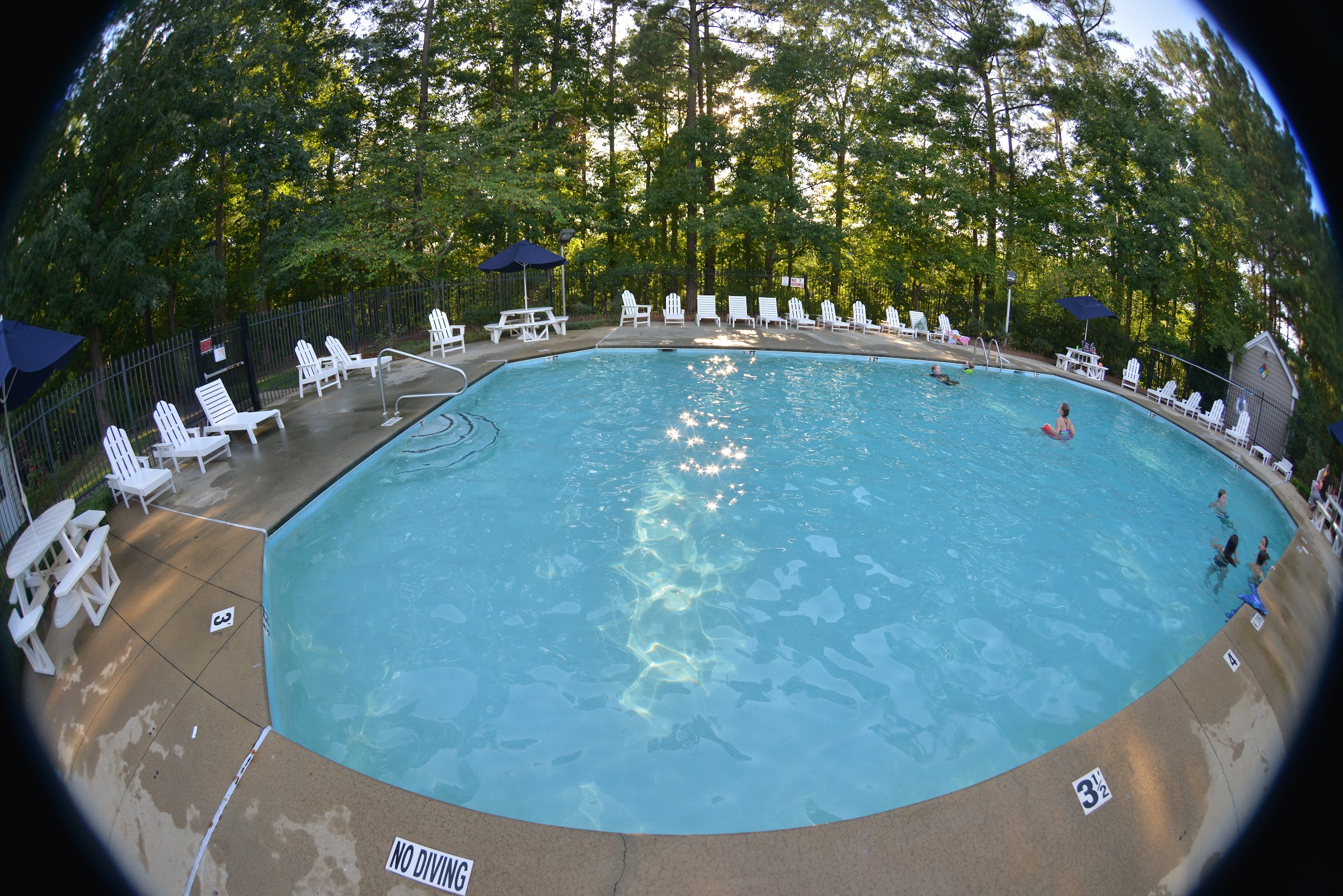 Great pool for this size, goes from 3' to 5' at the deep end. Has a nice neighborhood vibe to it!