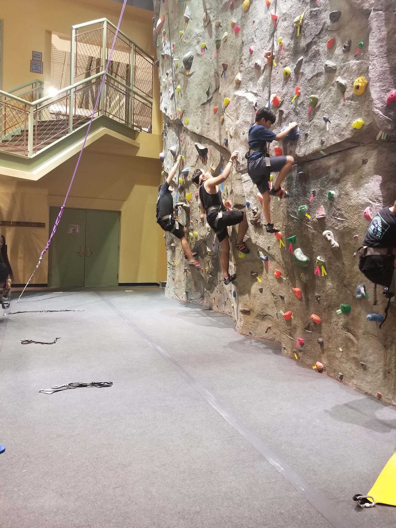 Well-maintained recreation center featuring a rock climbing wall and an ice rink.