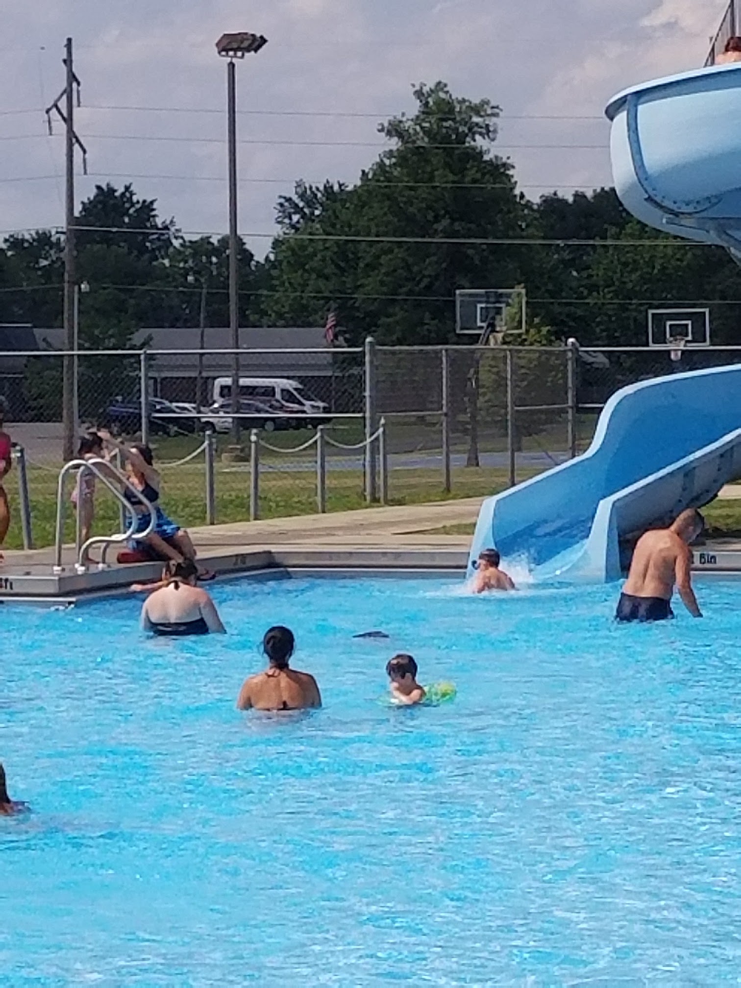What are people saying (AI review summary)? Reviews indicate the pool is generally clean, friendly, and fun, offering slides, diving boards, and a shallow area with fountains for children, making it a recommended spot for families. However, several safety and maintenance concerns were raised: a low start button at the kids' splash pad causing accidental activation, and a metal ring in the slide exit area causing injuries due to missing ropes. The splash pad also suffers from low water pressure and non-functional sprayers. A common request is for more shaded areas, especially around the pool. While it can be crowded in summer, the adult swim time is appreciated for a quieter experience.
