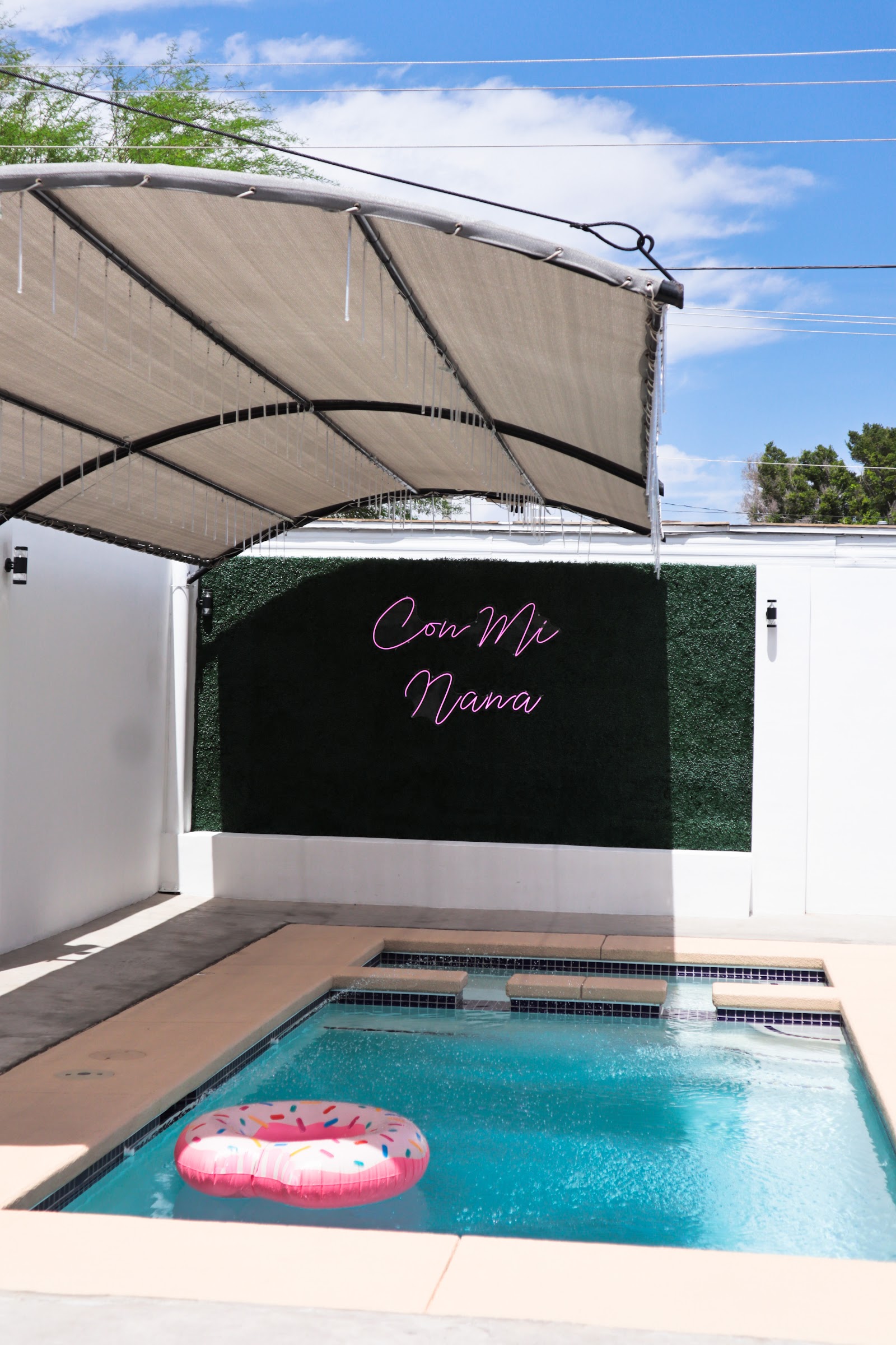 Specific temperature information for the pools at Con Mi Nana is not readily available in public descriptions or reviews.