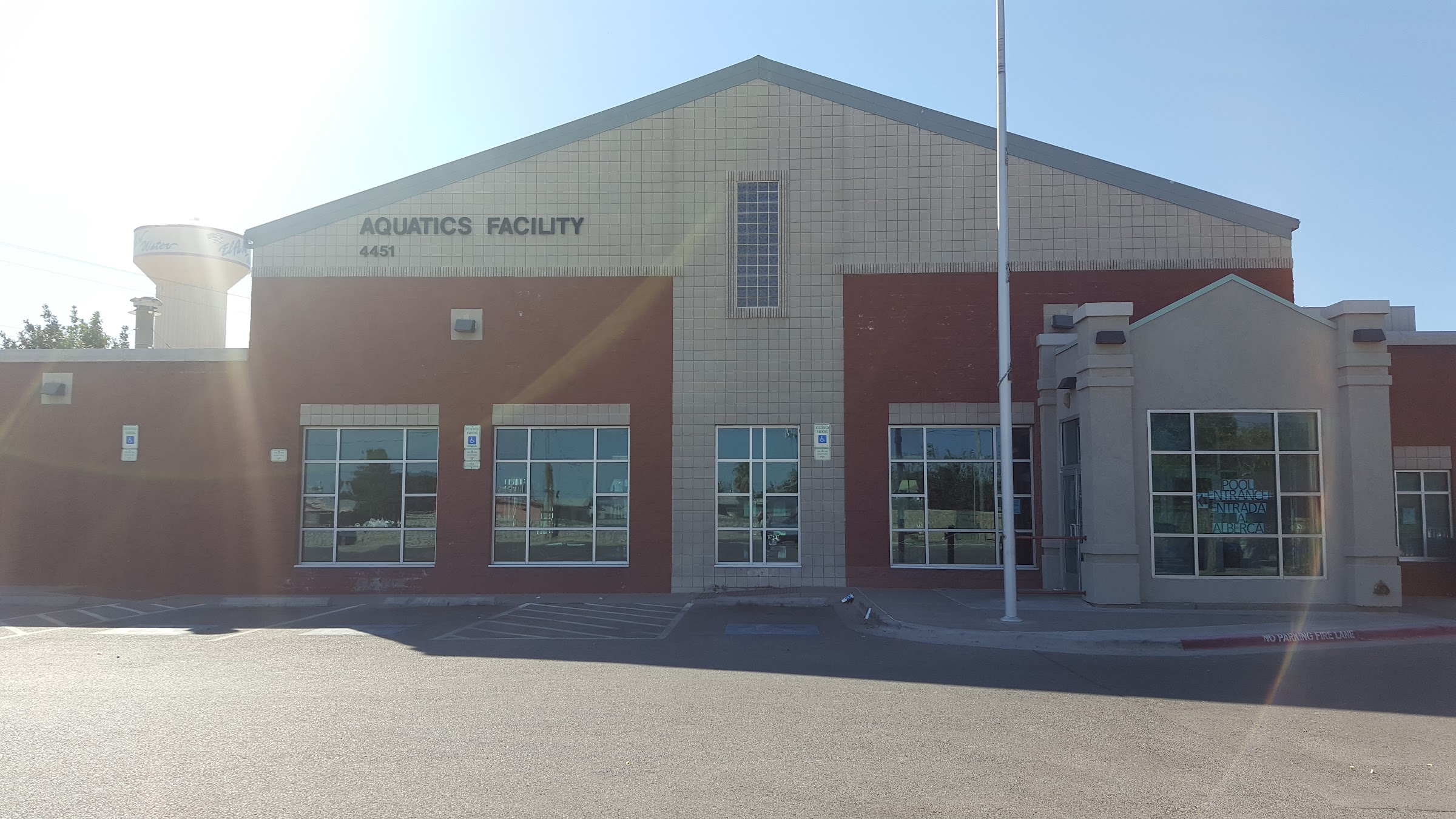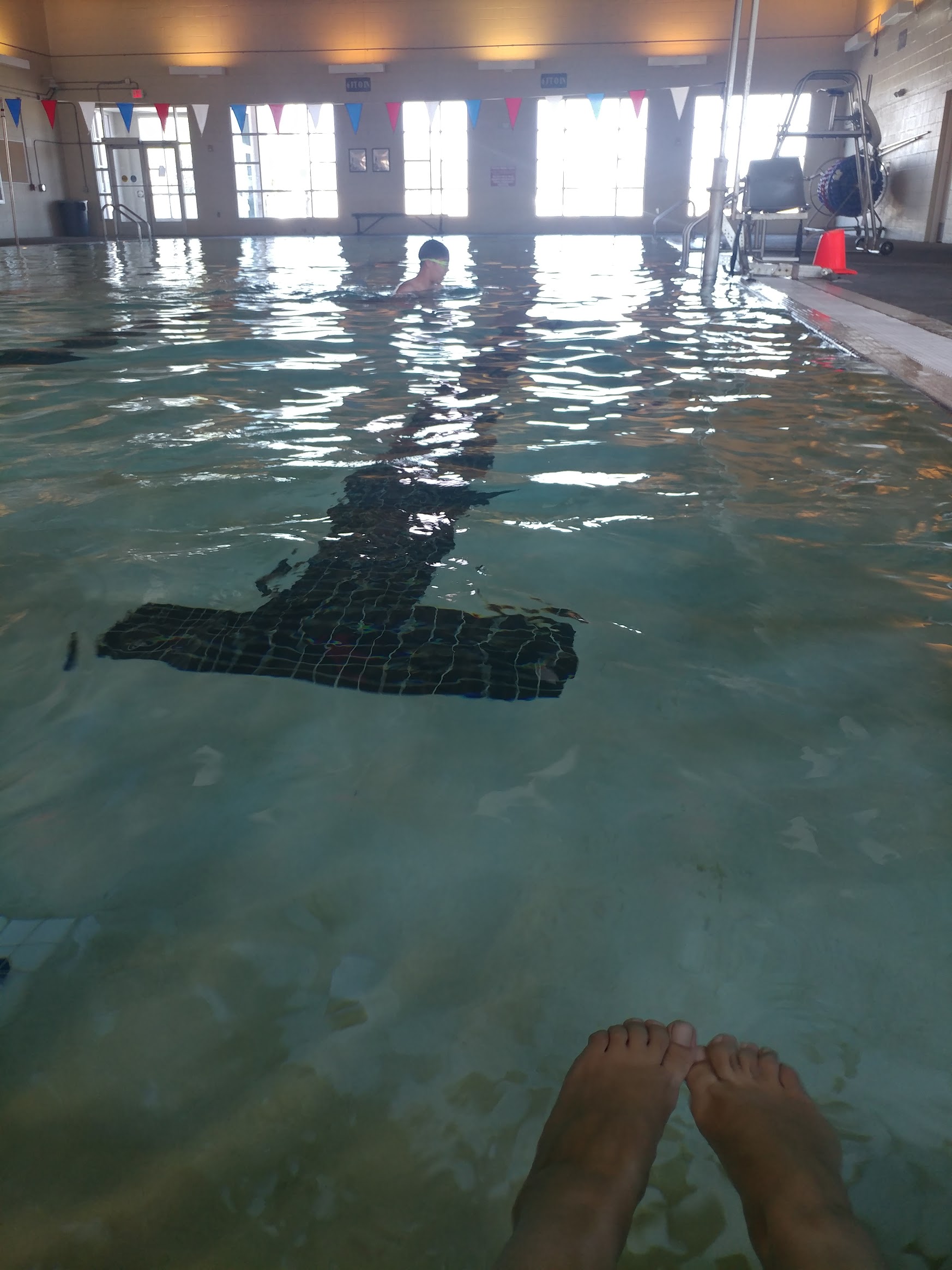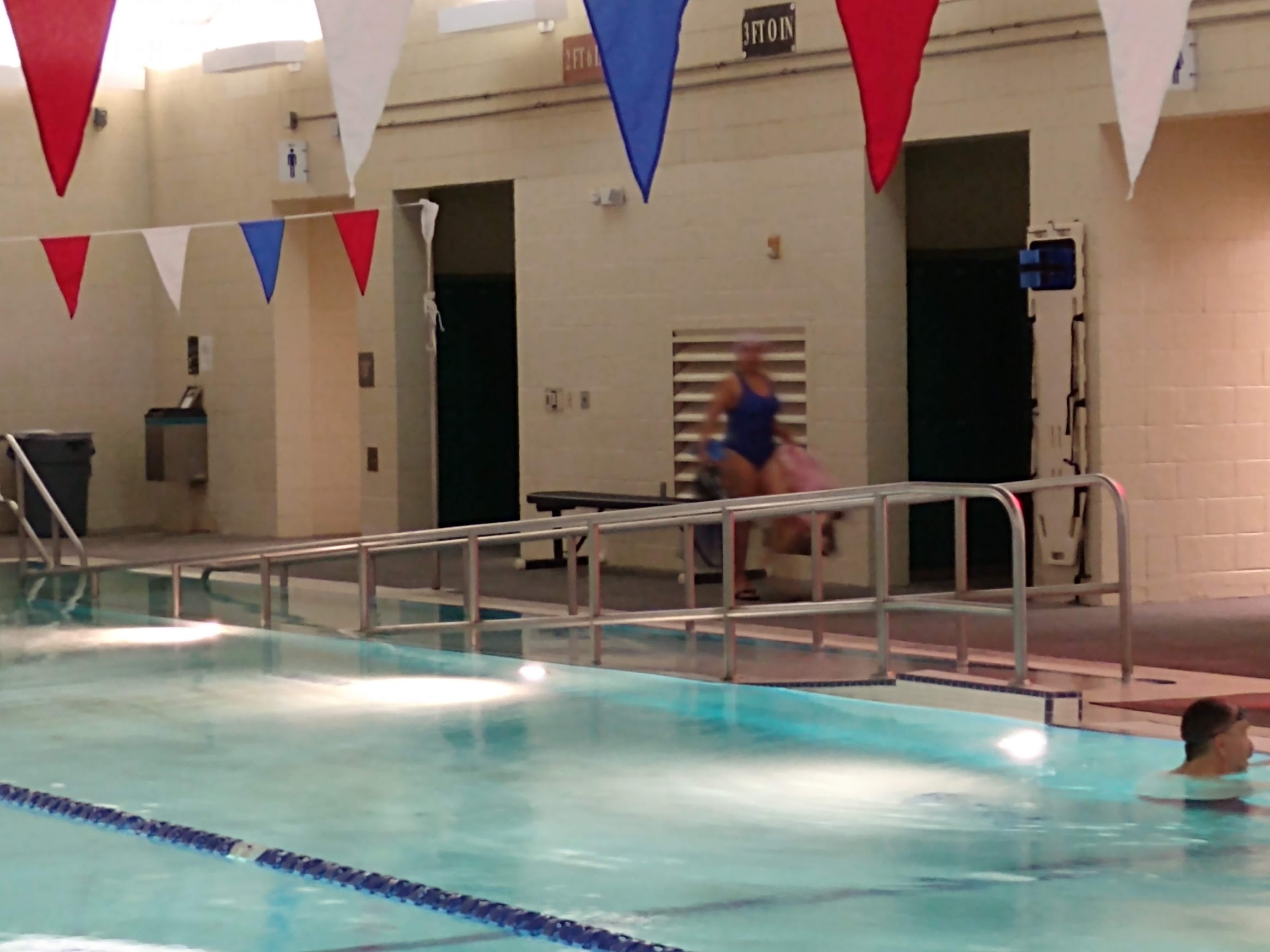 Good parking, wonderful accessibility for people with disabilities. Has a ramp entry in to pool. 2.5 feet to 6 feet deep. Limited amount of lap lanes but that is not a bad thing. Showers were nice and the ada shower is very nice. Great pool.