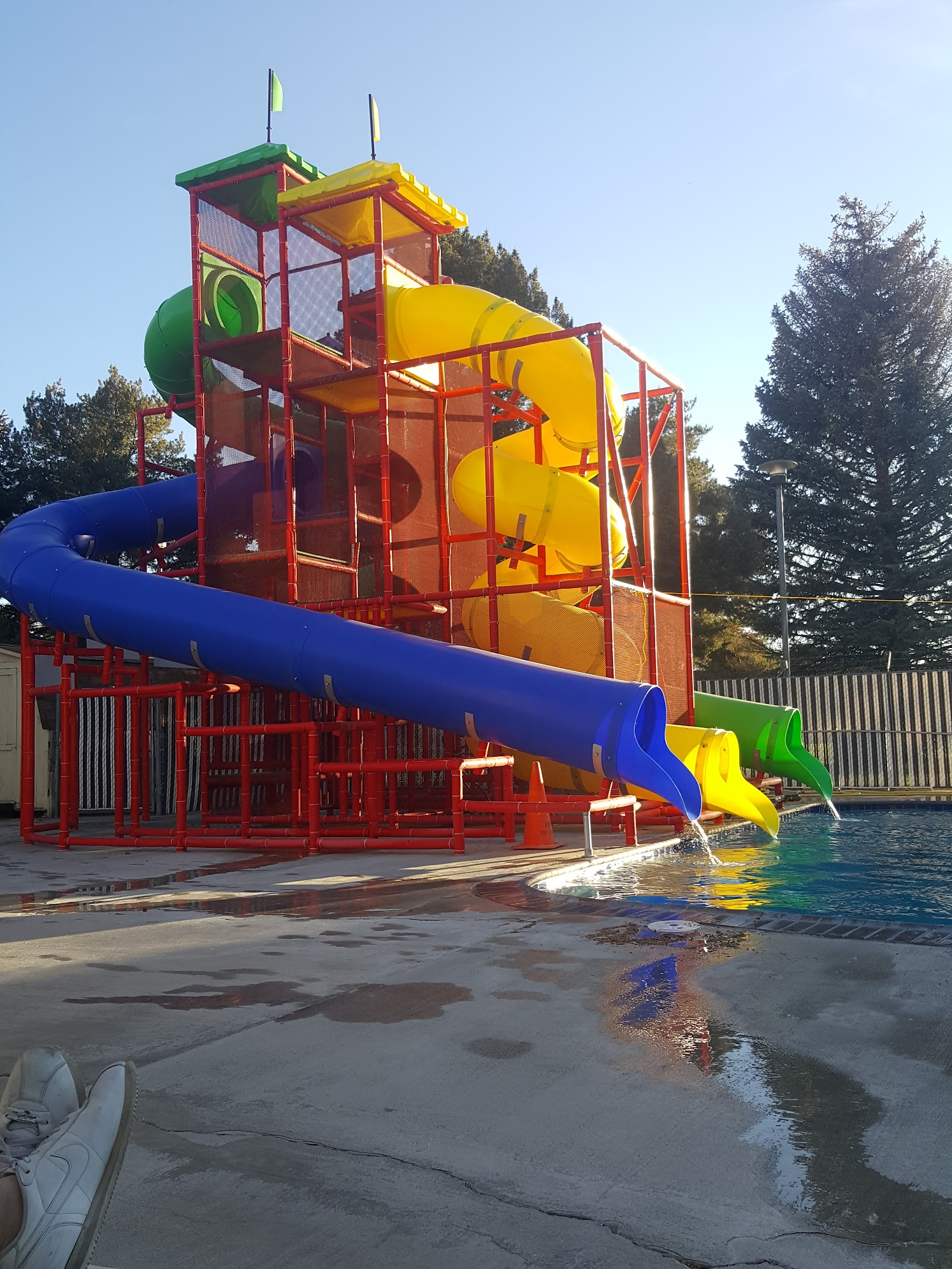 What are people saying (AI review summary)? The reviews present a mixed but predominantly negative view of the pool facility. Positive aspects mentioned include a clean environment and friendly staff (though some found staff rude), with one user noting the perfect water temperature for evening lap sessions. However, numerous issues were highlighted: frequent overcrowding, uncomfortably cold water (especially the outdoor kiddie pool and for general swimming), and strict, often poorly communicated rules for children (e.g., age/height restrictions, mandatory swim tests for slides, and no flotation devices on slides). Reviewers also criticized the lack of amenities such as rental flotation devices or snacks, a run-down building appearance, and a general lack of 'fun' features for kids. Customer service was frequently described as rude, particularly regarding refund requests. Hygiene concerns about the group showers were also raised by a diabetic user. Overall, many reviewers felt it was not a good value and would not return, particularly families with young children.