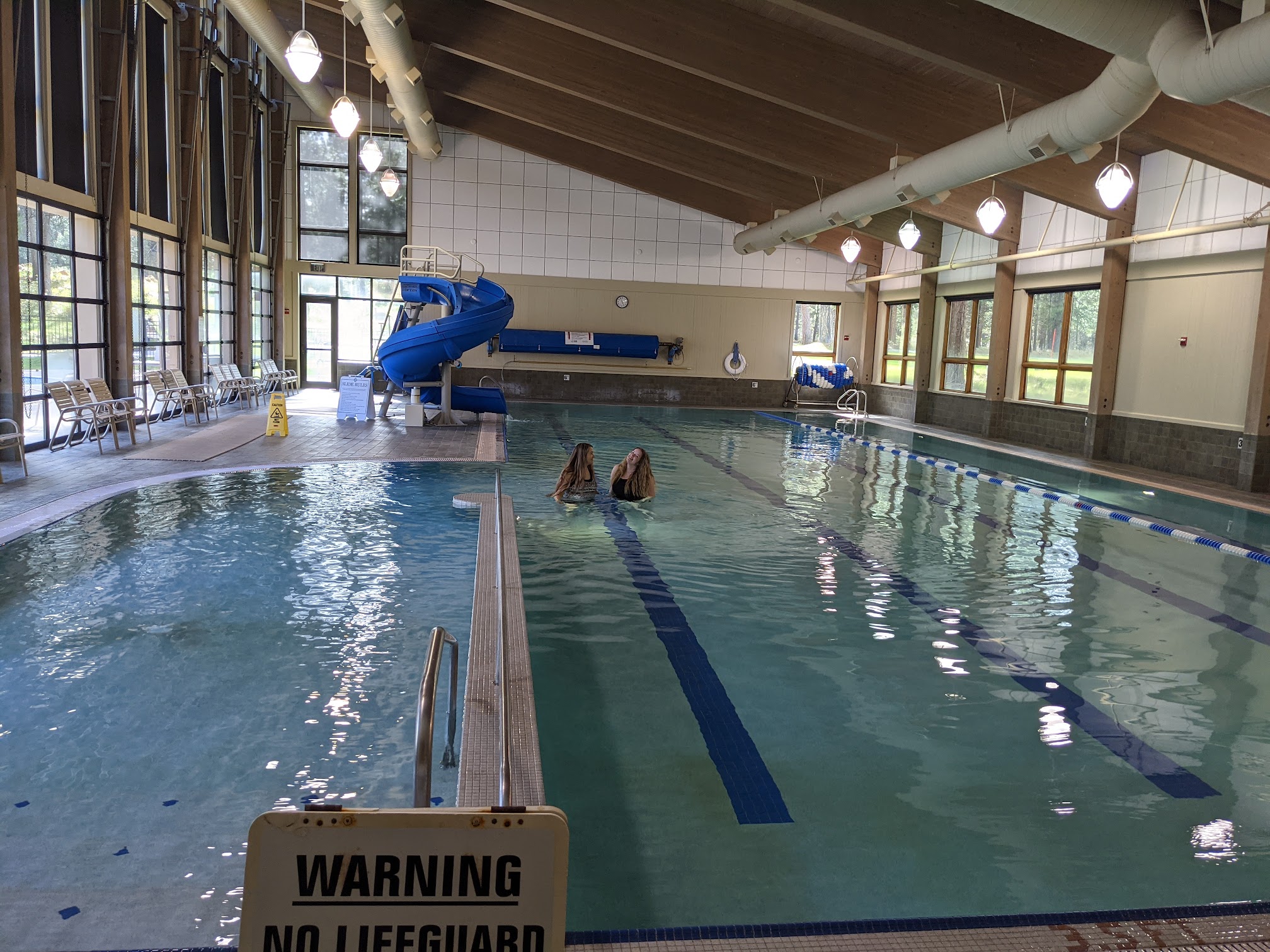 Recreation center with a family-friendly indoor pool, a steam room, and a hot tub.