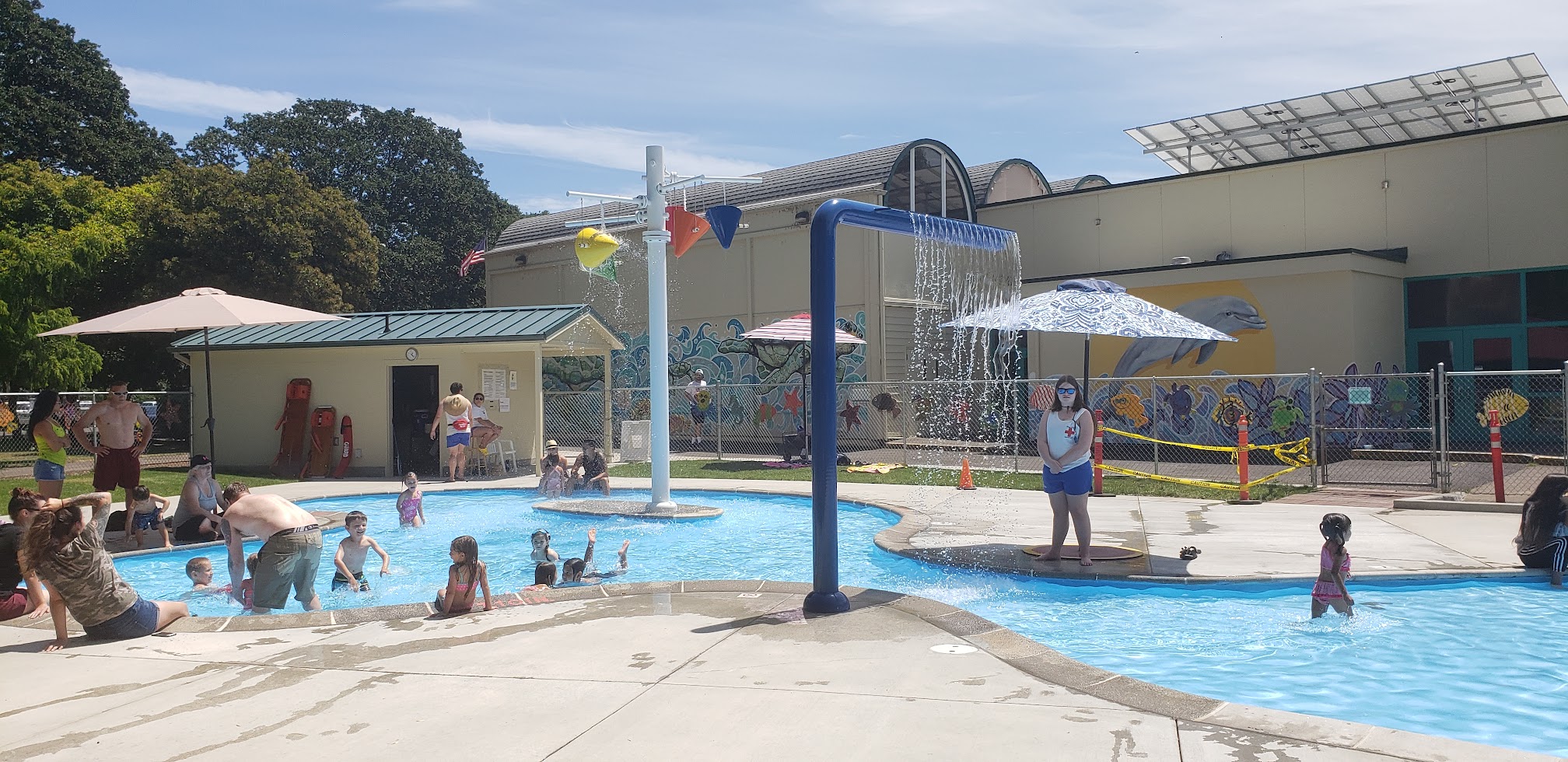 The district's indoor aquatic facility maintains its main Indoor Pool at a comfortable 84 degrees Fahrenheit, while the Leisure Pool is kept warmer at 90 degrees Fahrenheit, ideal for relaxed swimming and therapeutic use.