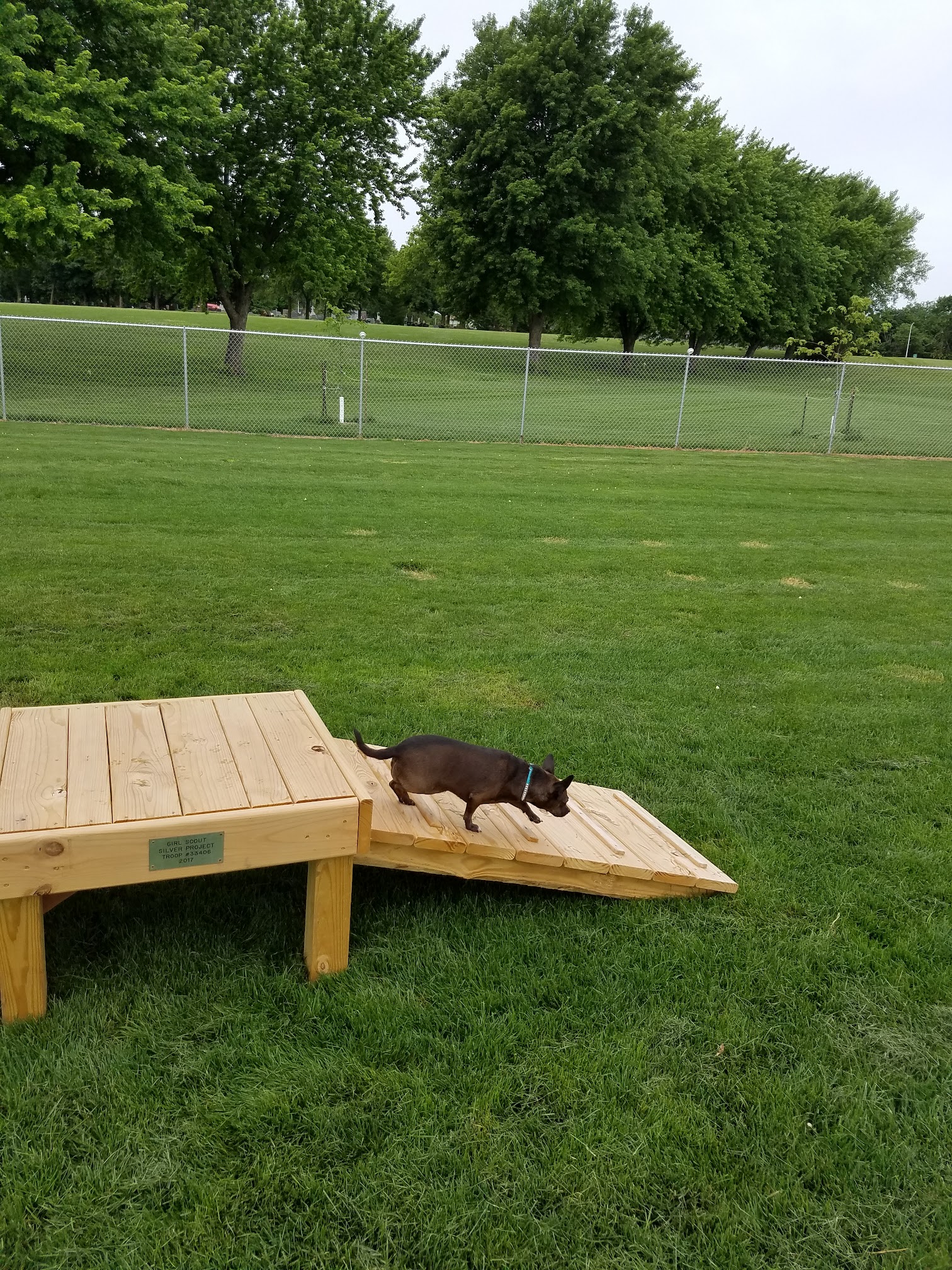 Fun stop. The family enjoyed a warm day cooling off at the pool. $7 per person over the age of two to get in. The park has 2 water slides, 2 diving boards, a rock climbing wall, a swimming pool for older kids and adults, a swimming area for young kids, and floating pods with a net above to get from one side to the other. Loads of fun.