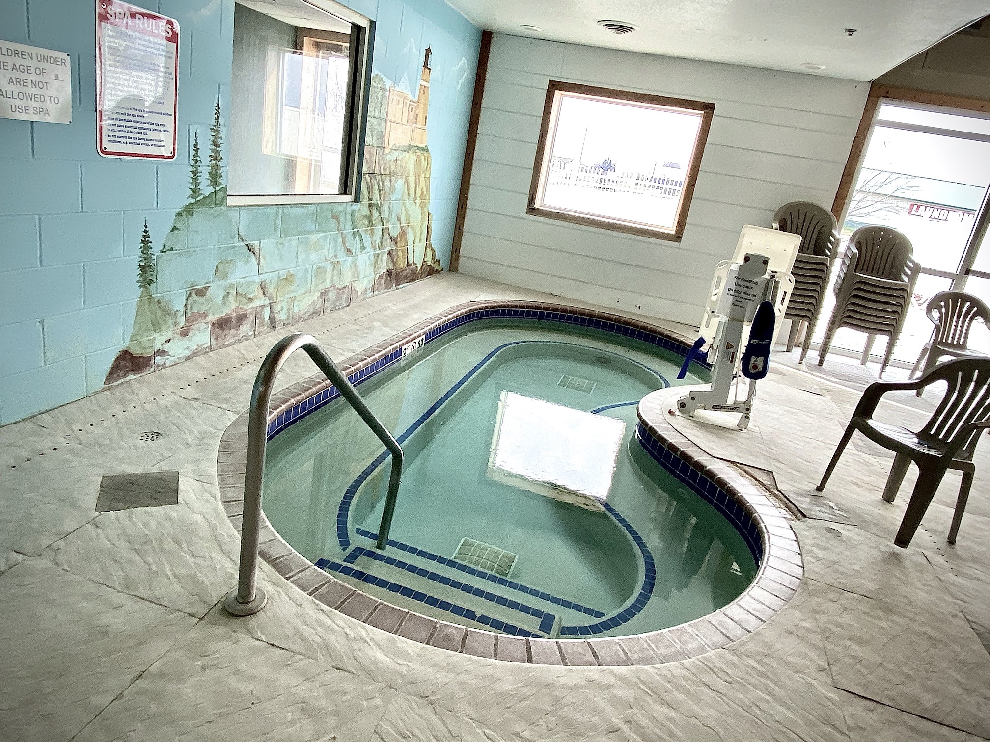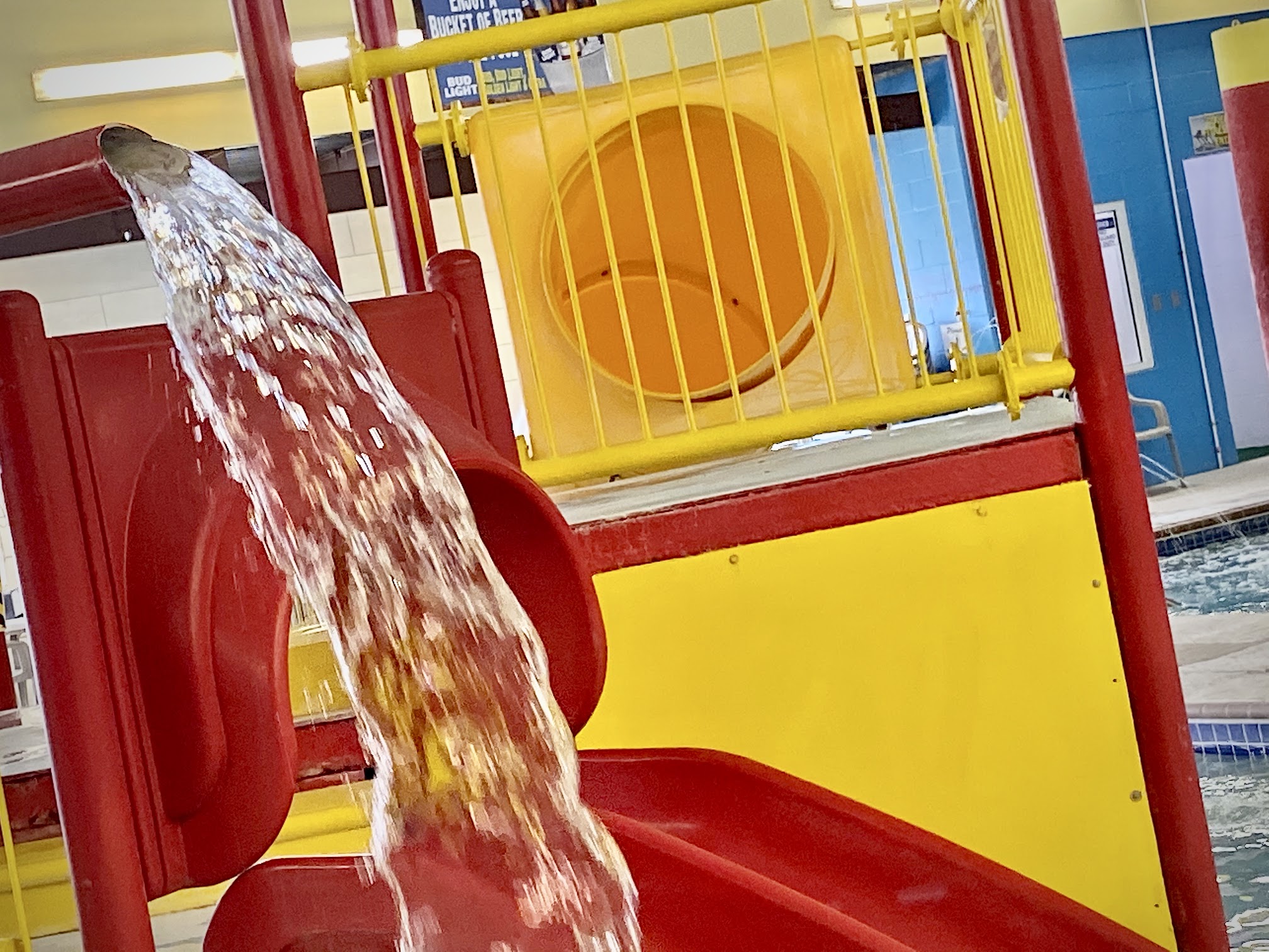 Was going to rent a room here so we could take my son swimming but decided to just come for the day. I am so happy we didn’t stay! The place is so run down. There is some sort of foam pad instead of concrete so it’s moldy everywhere you walked. The pool was so cold and mold was growing all over the park and slides. Half the showers don’t work. My son got chlorine burns on the tops of his feet. I was very disappointed because the pictures online made it seem like it would have been a great experience. Also half the hotel is closed and the restaurant that is attached to it was closed too. For a Saturday there was no one there that was the only positive part of the experience but there was a reason for no one being there.