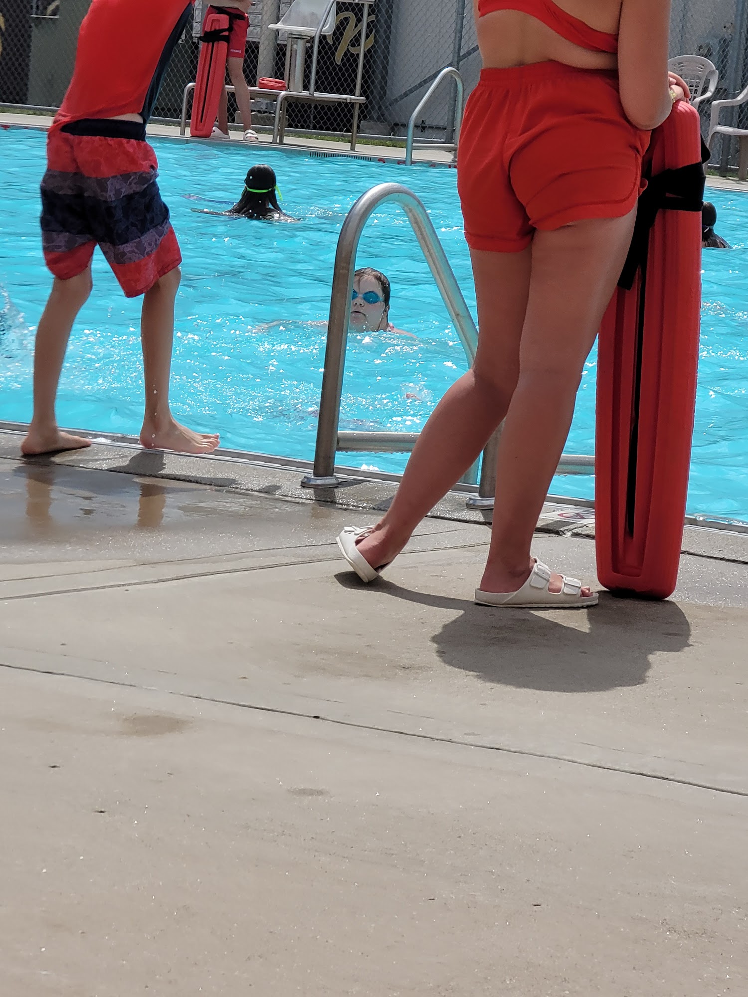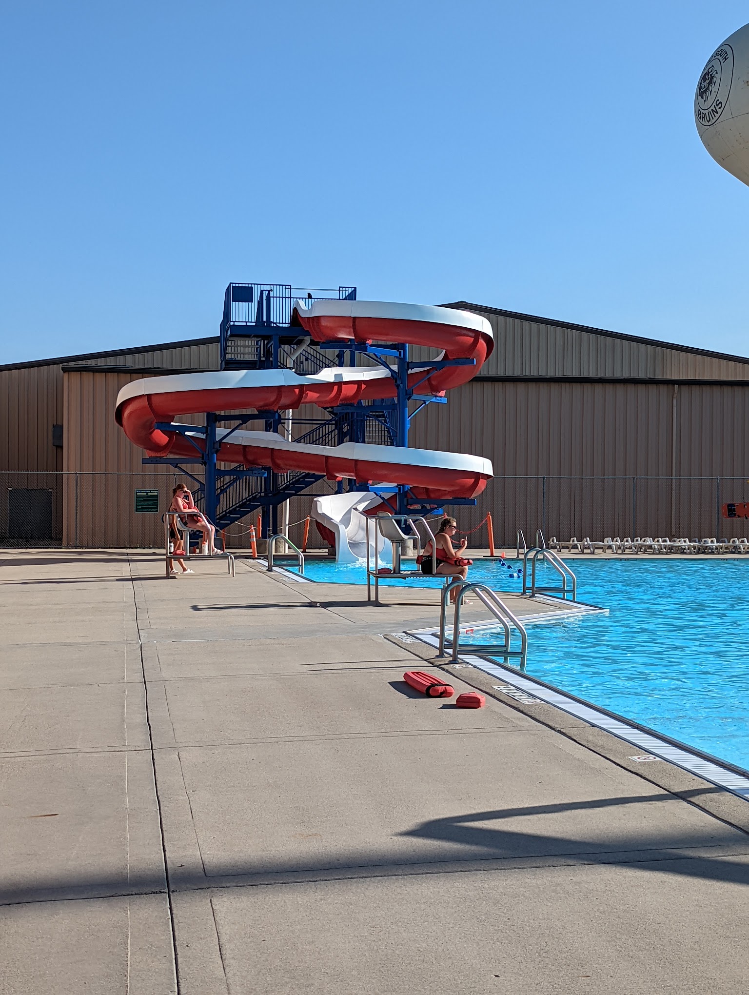 Lifeguards have gotten used to slow days with island park opening. We were the only people in there and the lifeguard was visibly annoyed that my kids wanted to go back up the waterslide after 5 min of swimming. She wanted to come back down and chat with her other lifeguard friend. We usually swim at north side or island park, decided to try out south. We won’t be back