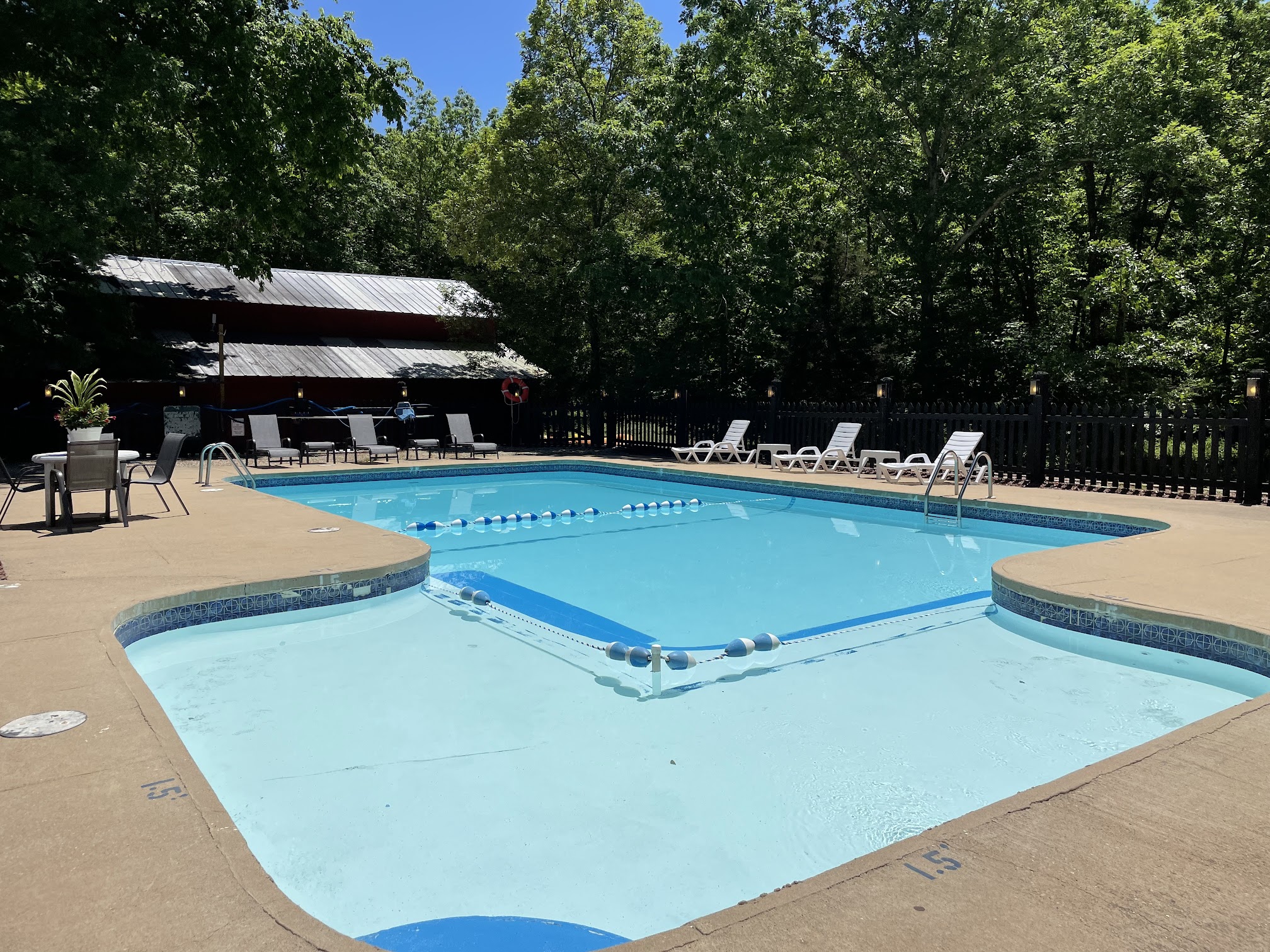 The campground was very peaceful! The grounds weren’t really kept up and the pool was green, pool was not open so that was a big disappointment for our son. In all fairness the guy informed us he had just taken ownership a month and a half ago. He was extremely nice and helpful. He even gave us free wood for our fire pit. Getting to the campground we pull a 21ft RV and it was fine, it’s a twisty dirt road but what do you expect when you’re in the woods. The way in was no problem the way out was a challenge, if you’re pulling out to the right the curve was a bit tight idk if a really big RV could make the turn. The dump station was fine with all the necessary hook ups even had a back up hose and we were able to dump with no problem. There does need to be a turn around added for the dump station, we had to turn around in the grass area which could easily be turned into a great turn around. The sites were great they had water hook up and electric, we had no problems with our site, we actually loved our site! The campground has tons of promise, excited to see how the new ownership runs it