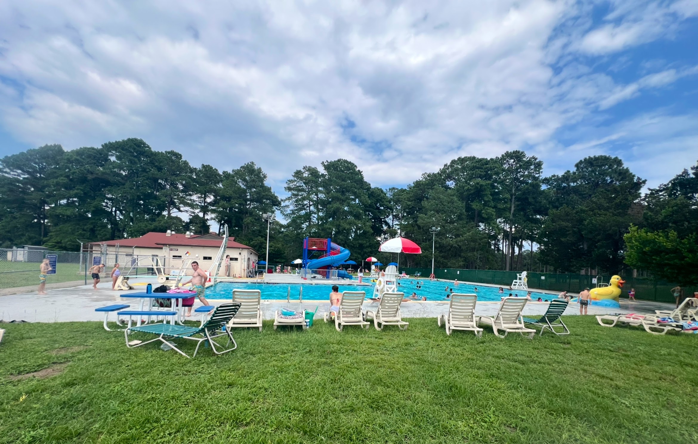 Very clean and calm pool. No costs for this summer you just need your Military ID. Has a diving pool & picnic tables w umbrellas.