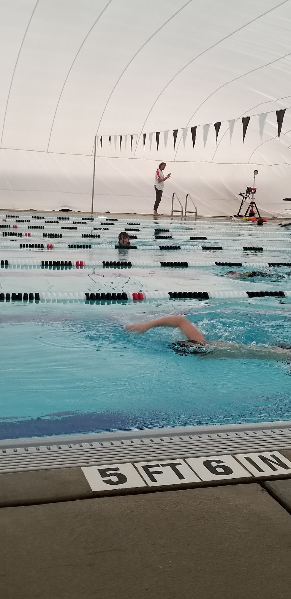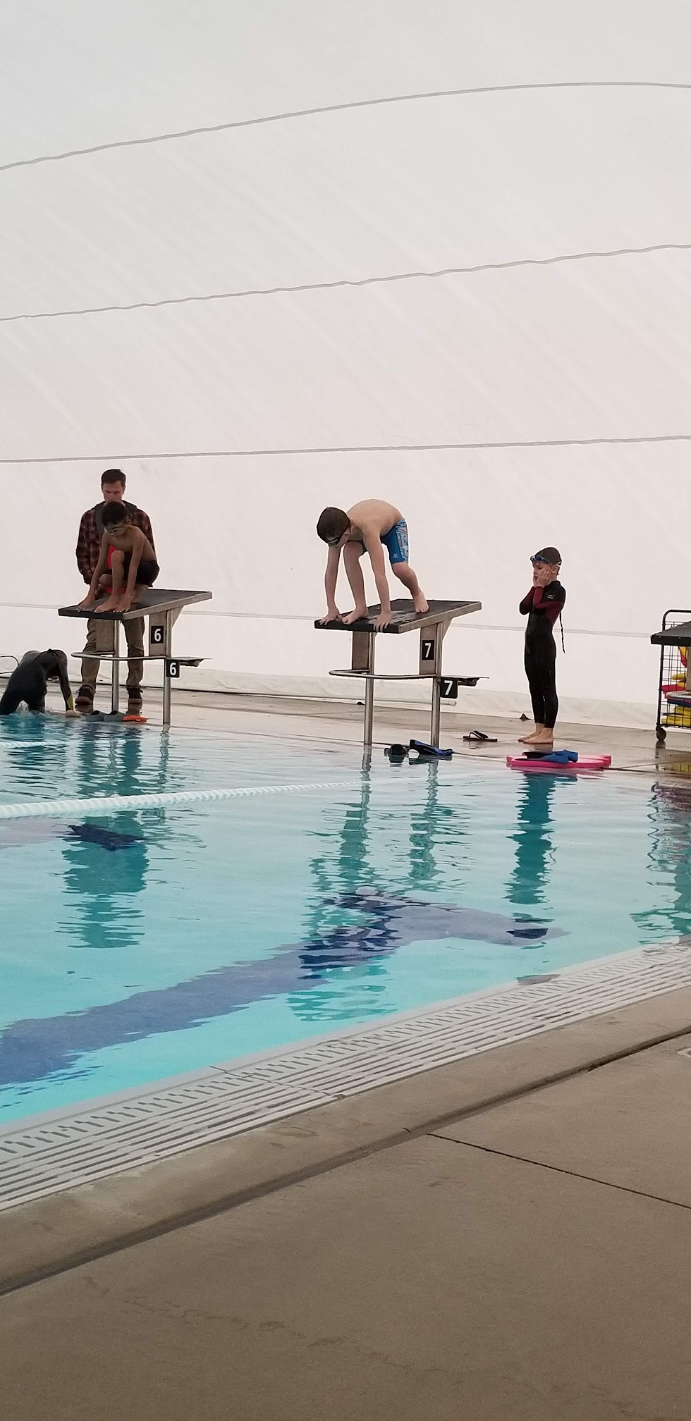 Love that a dome for winter has been placed over the pool. My son practices here with the FAST swim team and we've found it to always be warm, clean, with clean nice restrooms, showers, & changing areas.