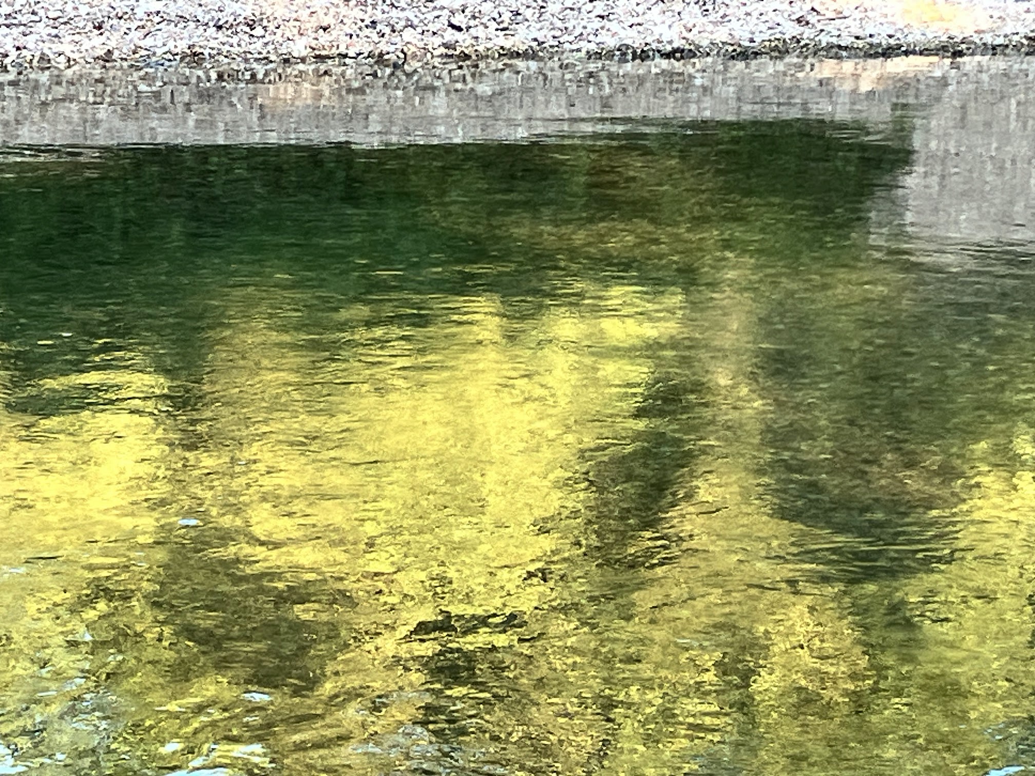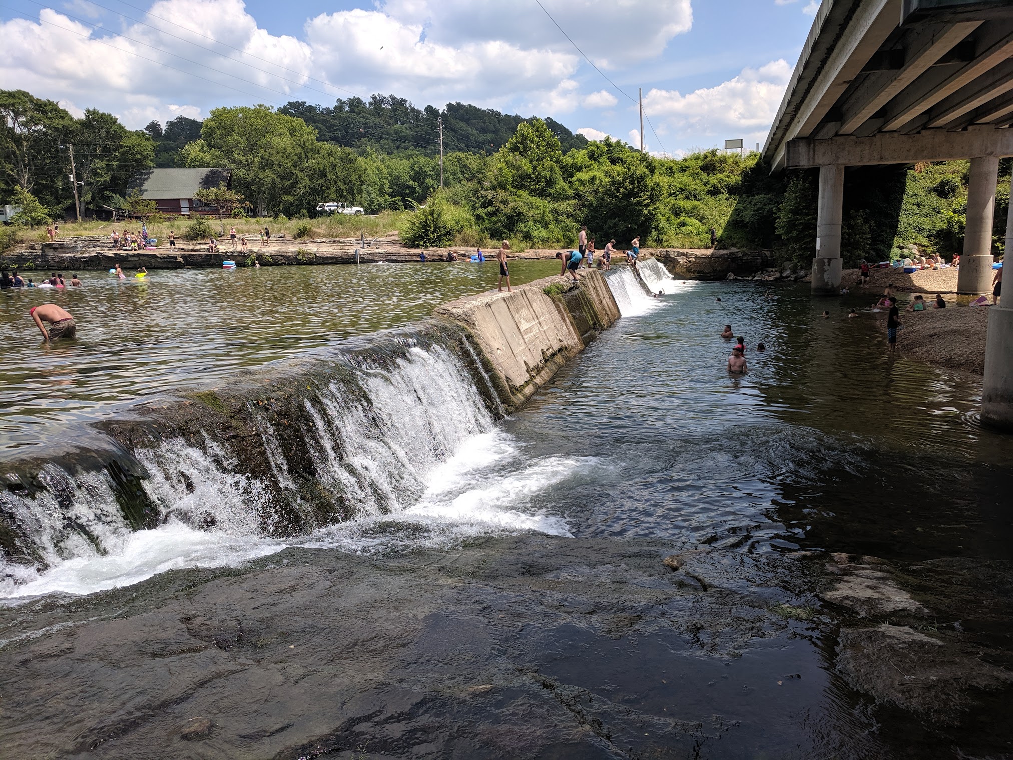 Natural swimming hole with cold water and a shallow area for kids off of a waterfall.
