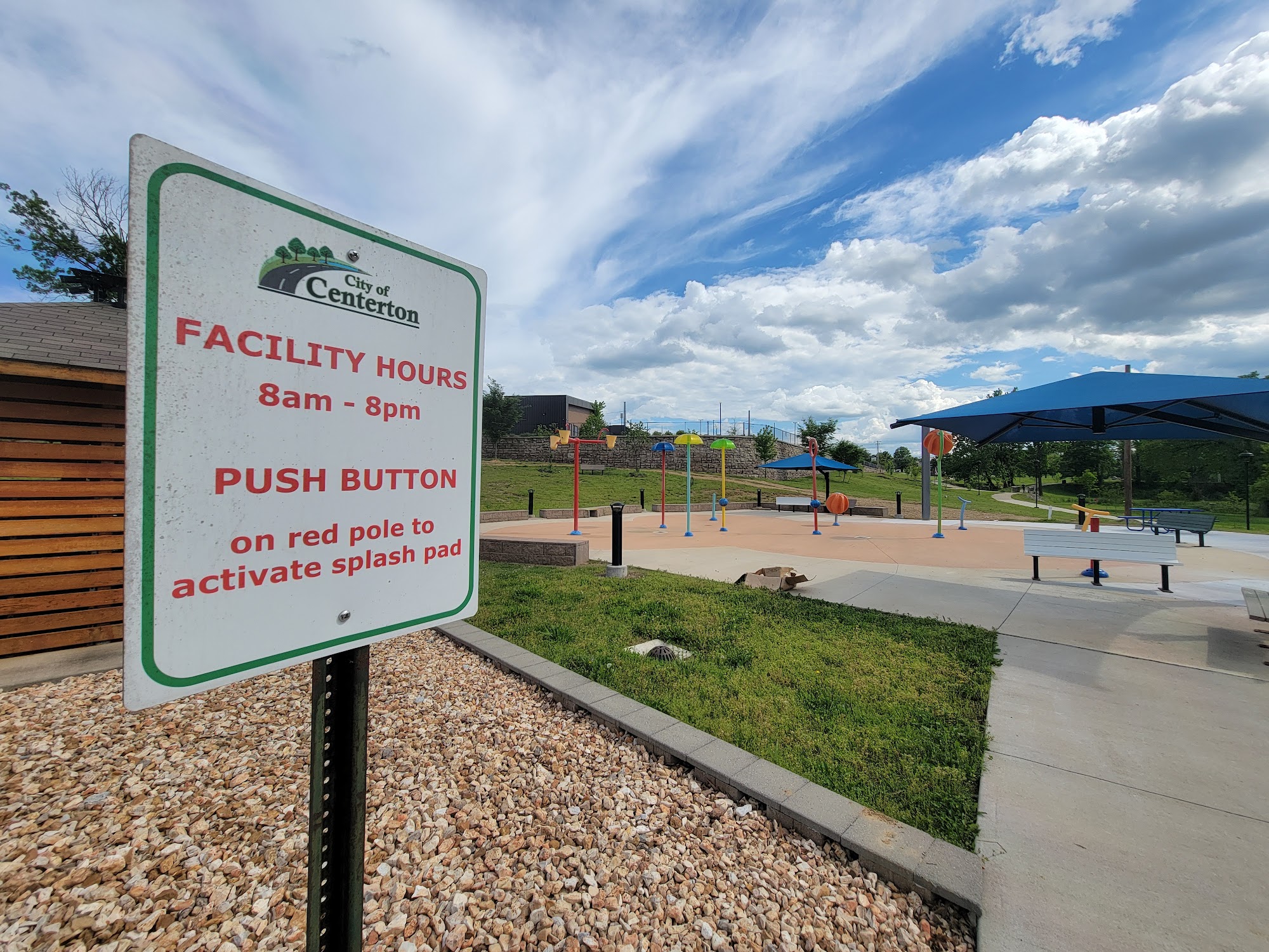 What are people saying (AI review summary)? This splashpad is generally considered fun with a decent size and a convenient, somewhat hidden location that often means fewer crowds. It features push-button activation, ample seating, and is well-situated next to a pavilion, playground, restrooms (including family restrooms), and a drinking fountain. Additionally, several food options are within walking distance. However, consistent issues with the water not being on despite posted operating hours are a common complaint. Visitors should also note the lack of shade on the splashpad itself, requiring sunscreen, and very limited parking, which may necessitate parking in a nearby shopping center and using stairs, potentially affecting accessibility. While smaller, it's considered adequate for toddlers and typically operates from Memorial Day to Labor Day, though checking Centerton city information for current status is advised.