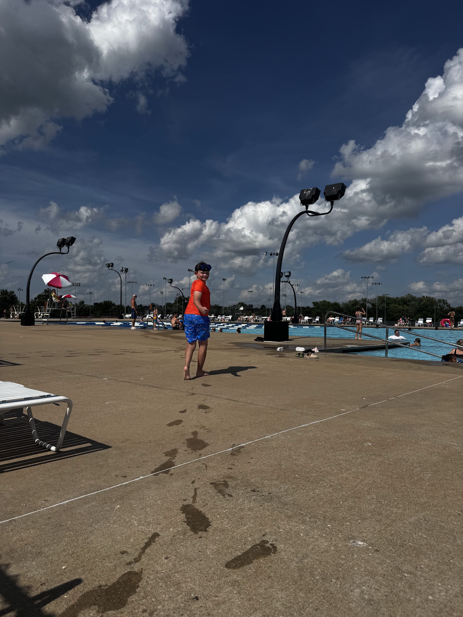 This was our first visit to the public pool. We were able to get in with our Bentonville community center pass which was very nice. We visited right before all the kids were due to go back to school but it was busy. If you haven't been and you have small children, I'll give some advice. When you exit the locker rooms turn right. To the right there is the kiddy pool (1 ft deep) and the more shallow end of the big pool (3 ft deep to the deeper end). Bring a life vest for kiddos who can't swim and don't forget your sunblock (only one end of the pool is shaded). The life guards were all very nice. We didn't get anything from the concession stand but I saw others enjoying several items like pretzels, chips, and snow cones. The locker room was pretty clean and there was plenty of room to change and shower.