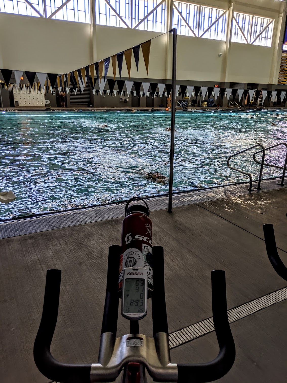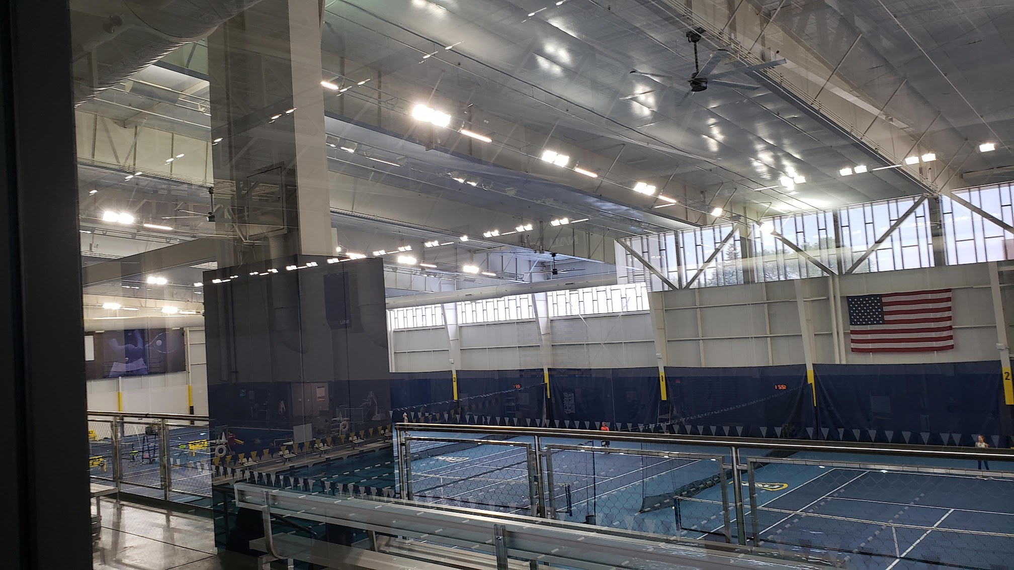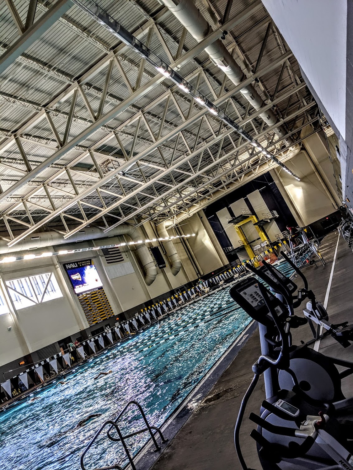 For our kids HS swim meet we parked in the structure ($16 day/$4 hour). We waked to the aquatic center (a block or so) and entered at pool deck level (parents not allowed on deck). Aquatics event viewing is on the 2nd floor with bleacher style seating. You can bring your own folding chairs and set them up on the top level. Also it’s very hot and humid in here in September so dress accordingly
