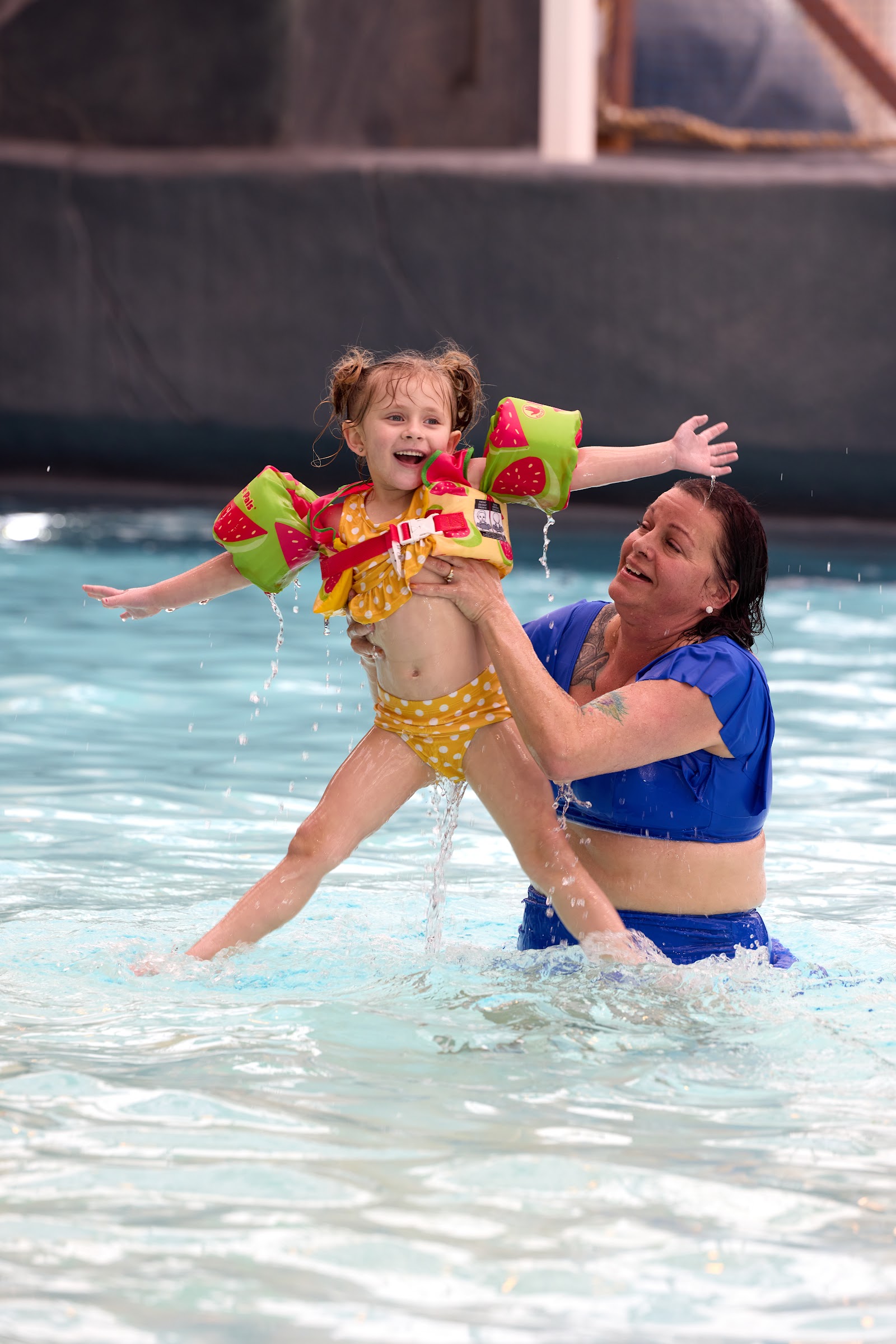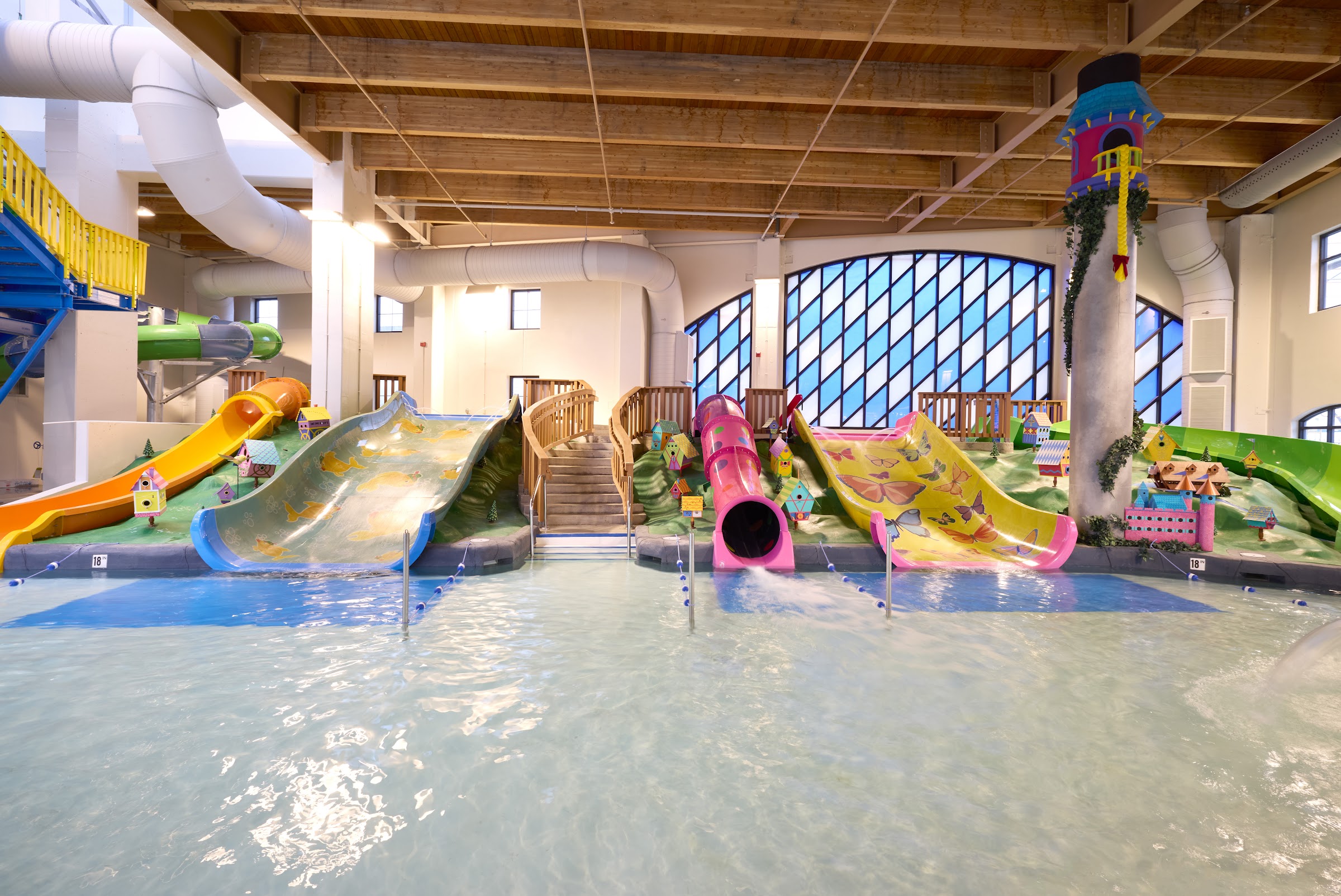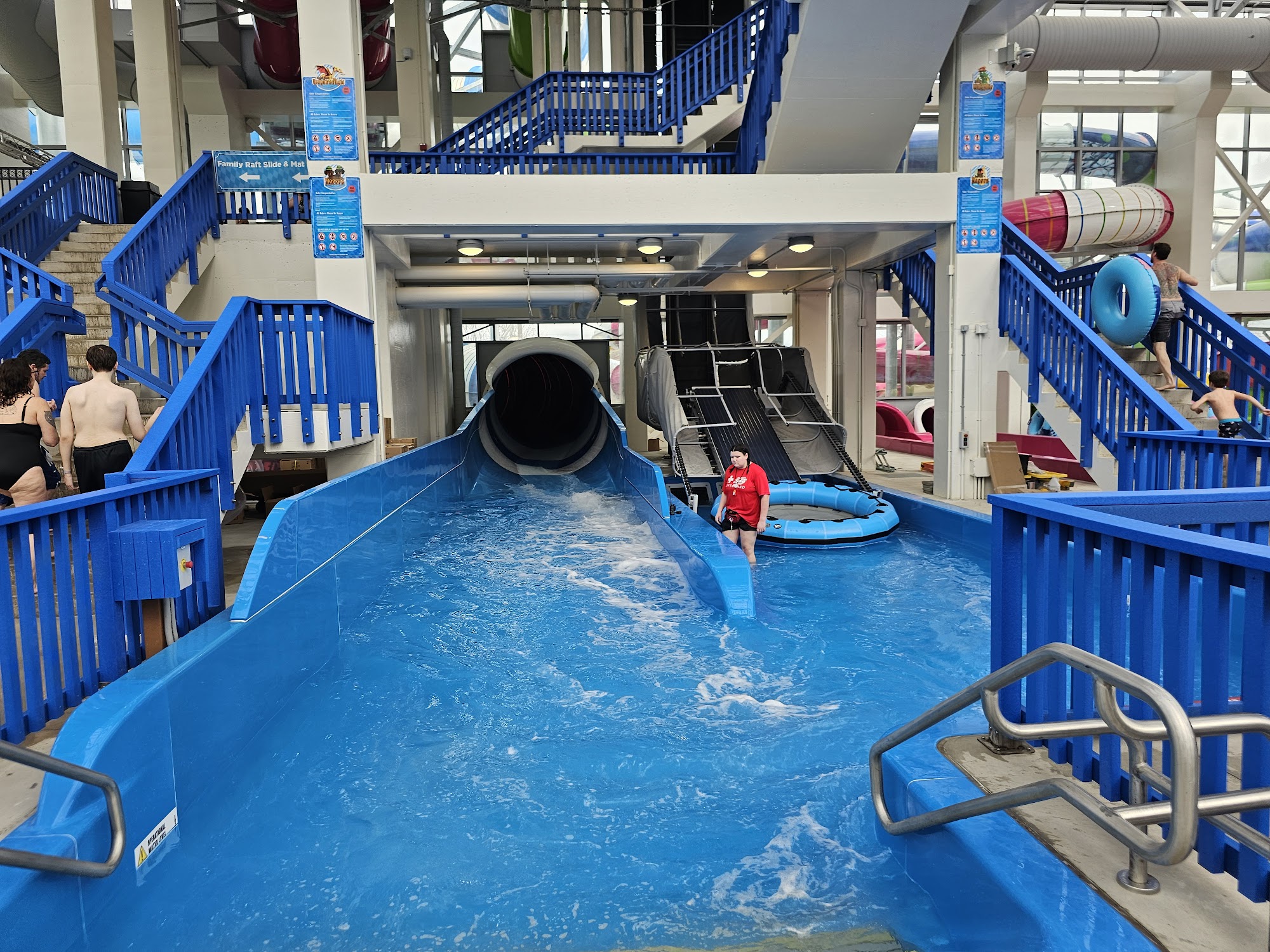 So we brought our grandkids from Texas here during their summer break. The ages ranged from 4 to 13. Overall the kids had a great time and so did the adults. The positives were it is spacious, has all the amenities (including adult beverages at the swim up bar), and is family friendly. The only negatives were the cool draft when they opened the outdoor pool door, the lazy river seemed too shallow for adults, and the new slides were slower than the old water park's down the hall. Our kids spent half the time over there. The first aid room looked top notch and lockers were plentiful. Towels require a $20 deposit I am told so we brought our own. All in all it was a great time.