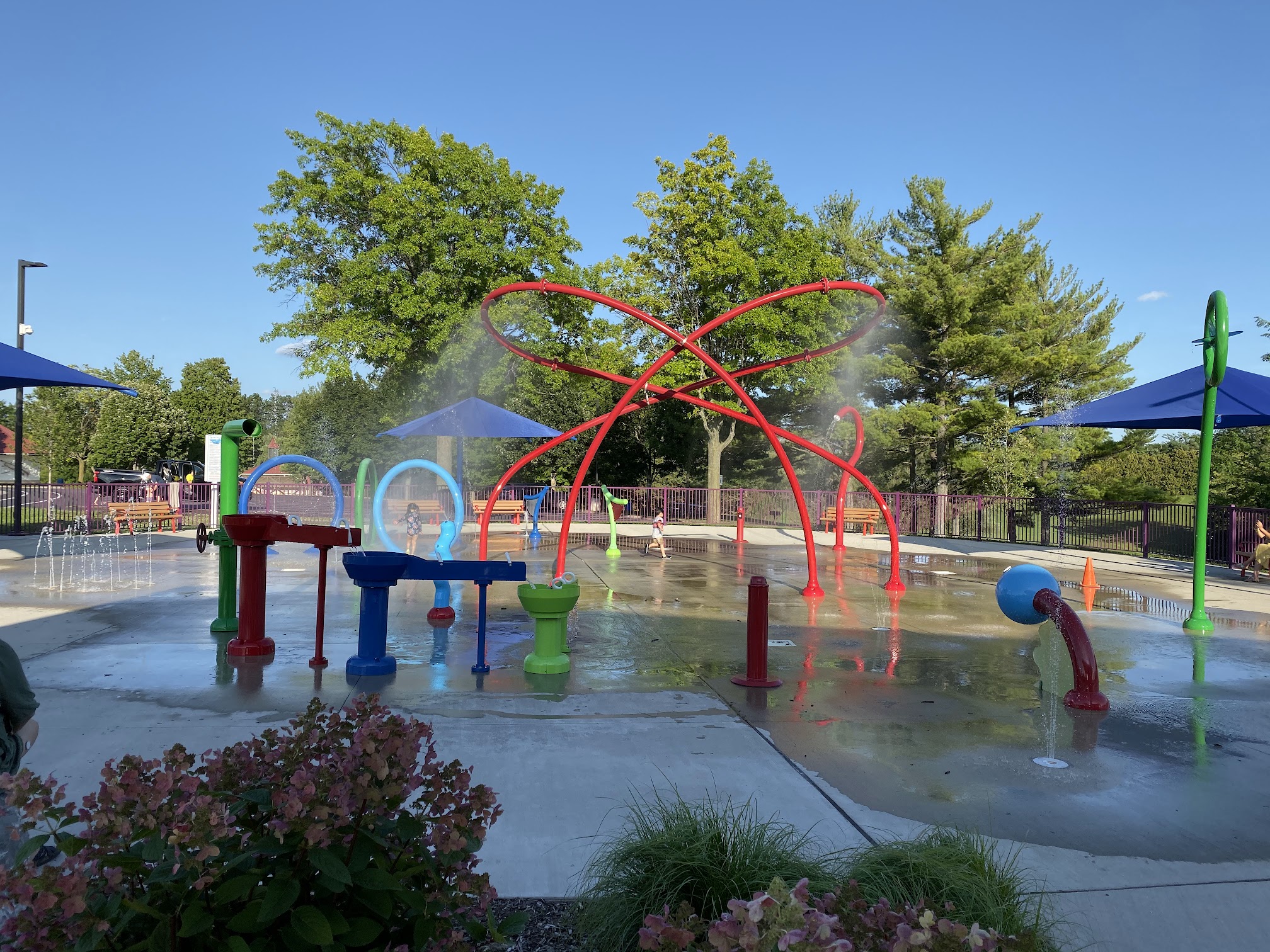 Omg. What is wrong here! Free water splash pad and hardly anyone here. Omg. The place has it going on! Wow. Great addition to this park! Clean fountains. Fresh water. Nice hill. Very clean. No rust on pipes. This place should charge or offer food! Wow. Great place indeed. Highly recommended!!