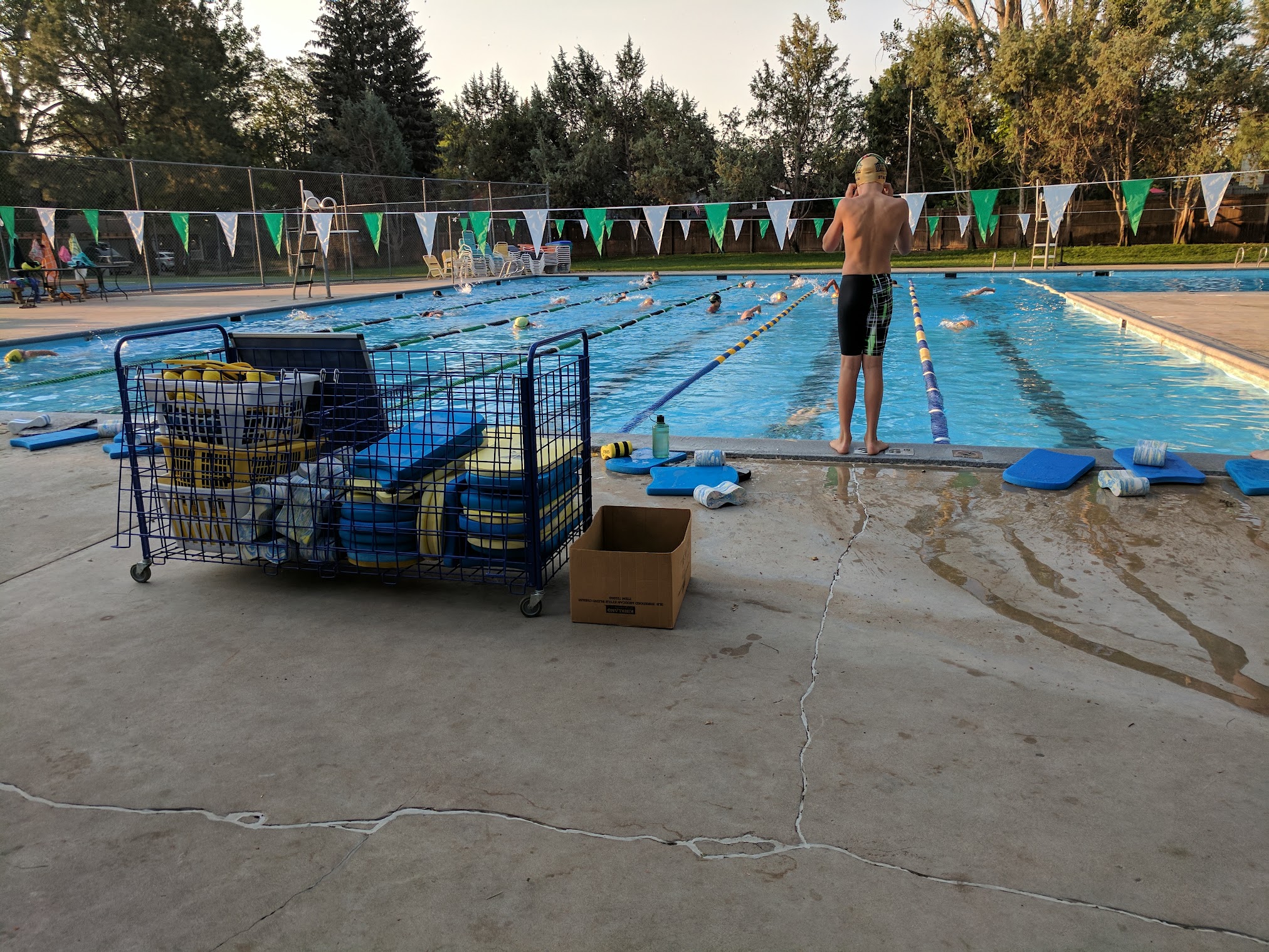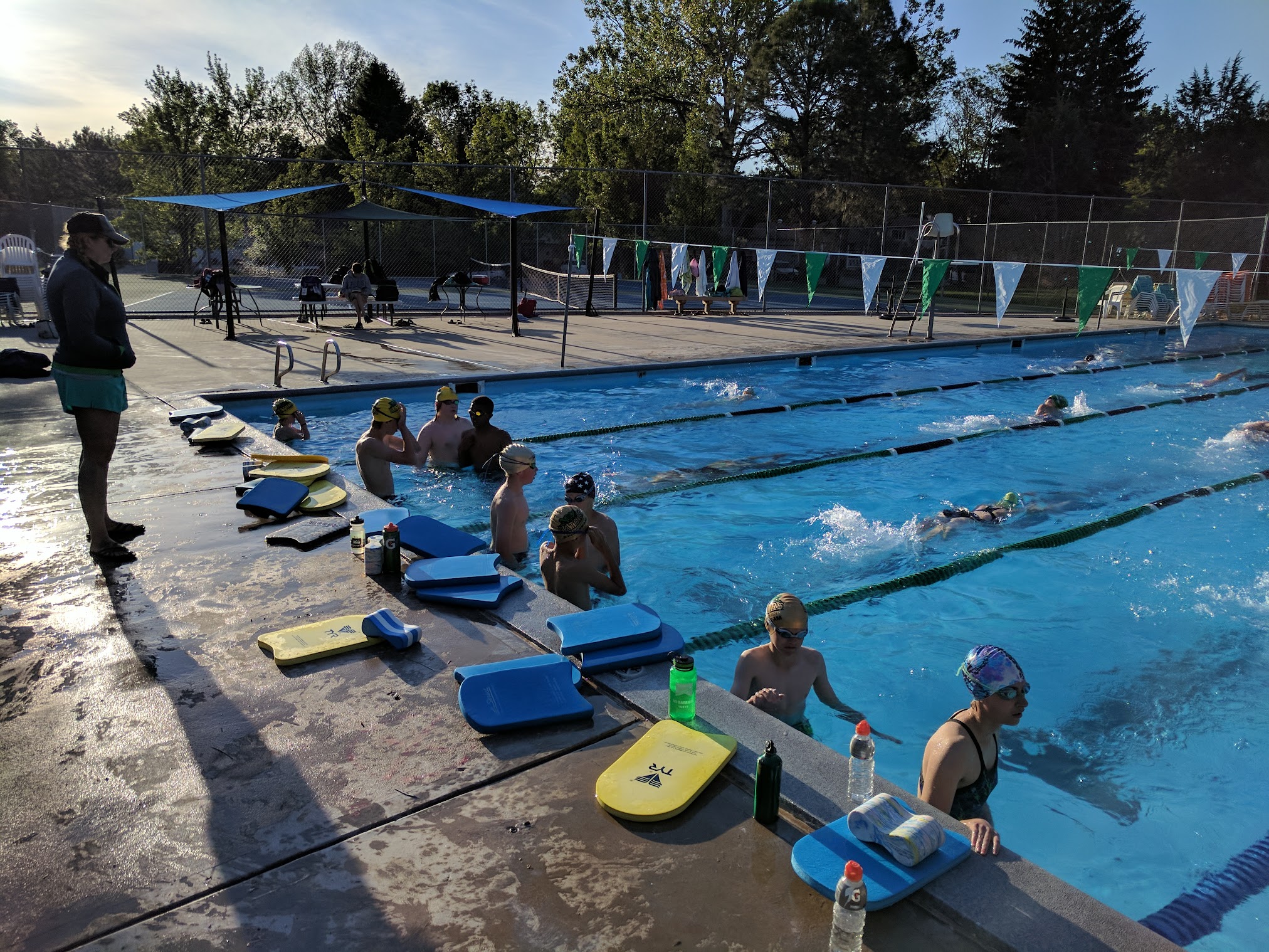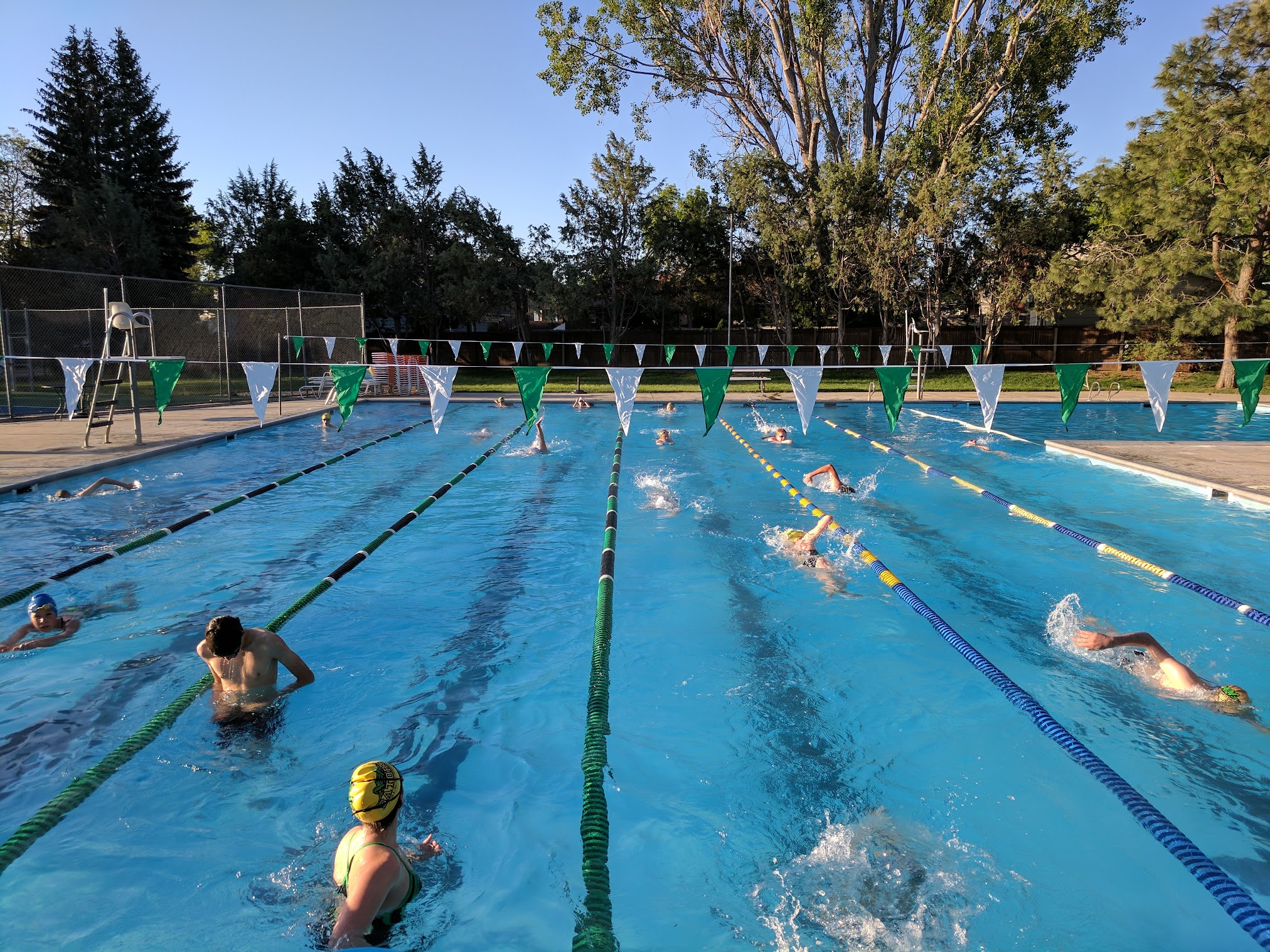 This is an amazing place to swim, the water is always a perfect temperature, and the life gaurds are always nice, and watch full. There are three lanes, a high, and low dive with a 10-12 foot deep end. Also, there is a large free-swim pool, along with a small, shallow kitty pool for the smaller kids. There is a pickle ball/tennis court. I would recommend this pool to anyone who loves to swim.