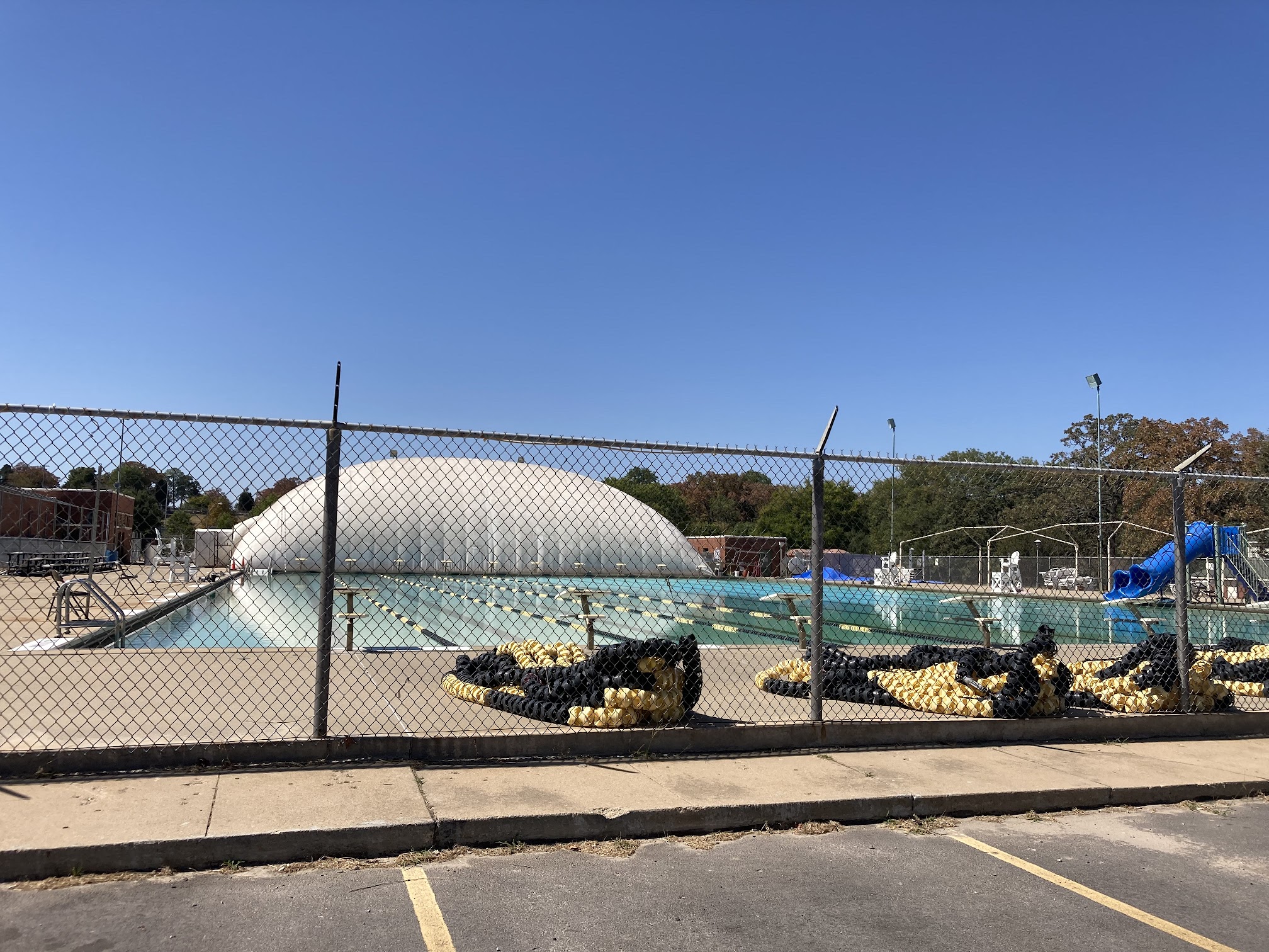 Public 50-meter pool offering lap swimming, diving boards, tube slides, and a kiddie pool.