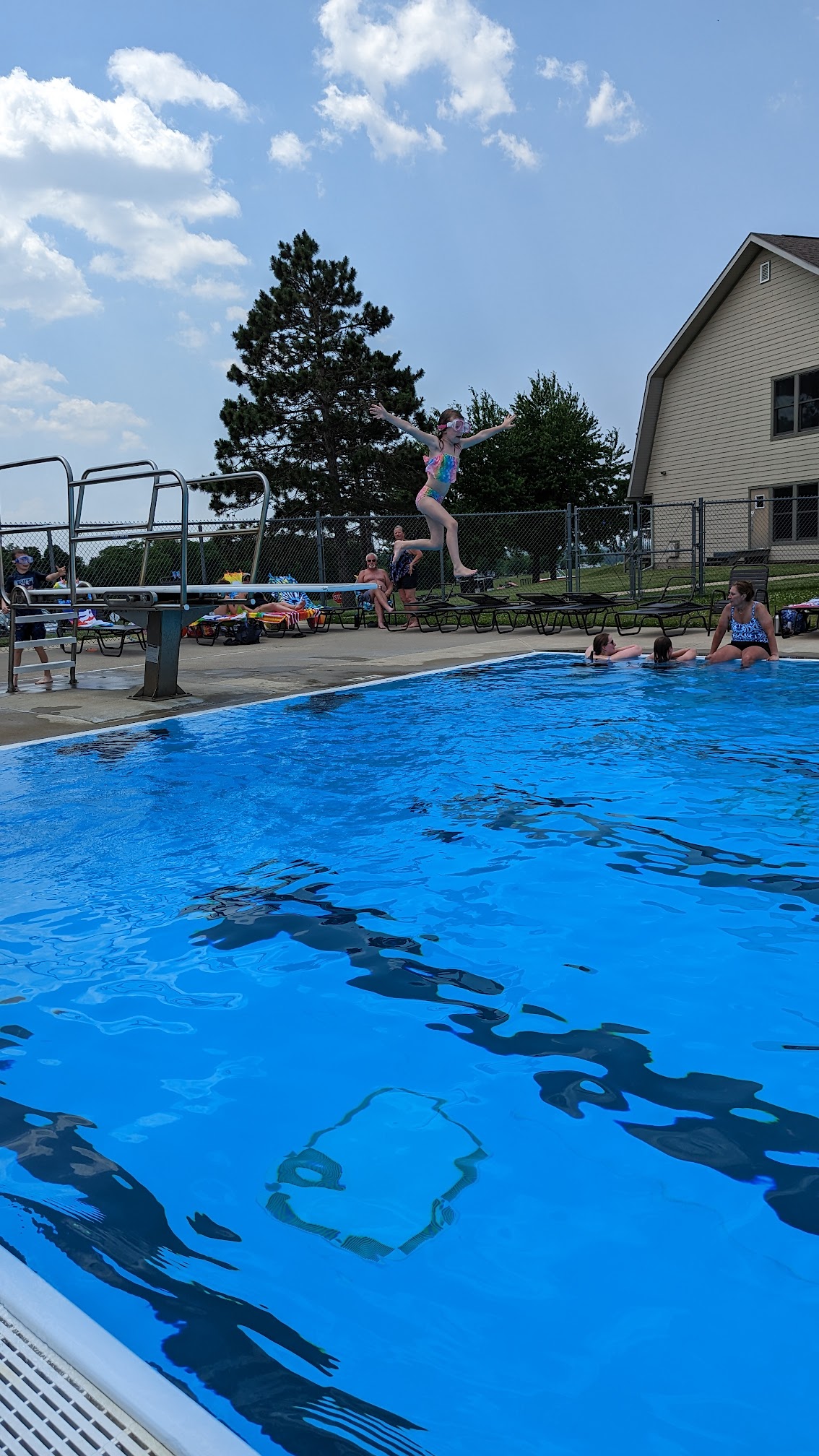 Awesome family outdoor pool! Super nice and alert lifeguards watching the pool! Play hoops, go down the water slide, take a dive off the diving board, swim laps, or wade into the zero depth entry area for littles. Inside pool great for swimming laps or for wintertime swimming. Highly recommend! We love coming back here year after year.
