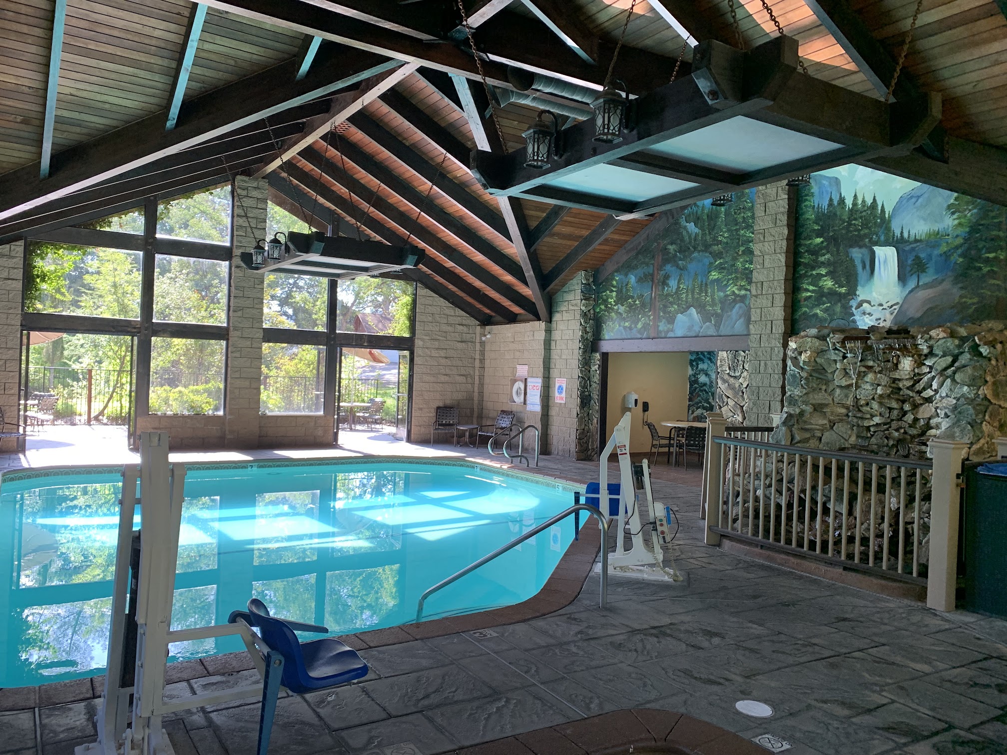 The Indoor Pool at the Best Western Plus Yosemite Gateway Inn, located at 40283 Rd 425A, Oakhurst, CA 93644, USA, is a heated facility available to guests. It provides a comfortable environment for swimming year-round, often accompanied by a hot tub for relaxation.