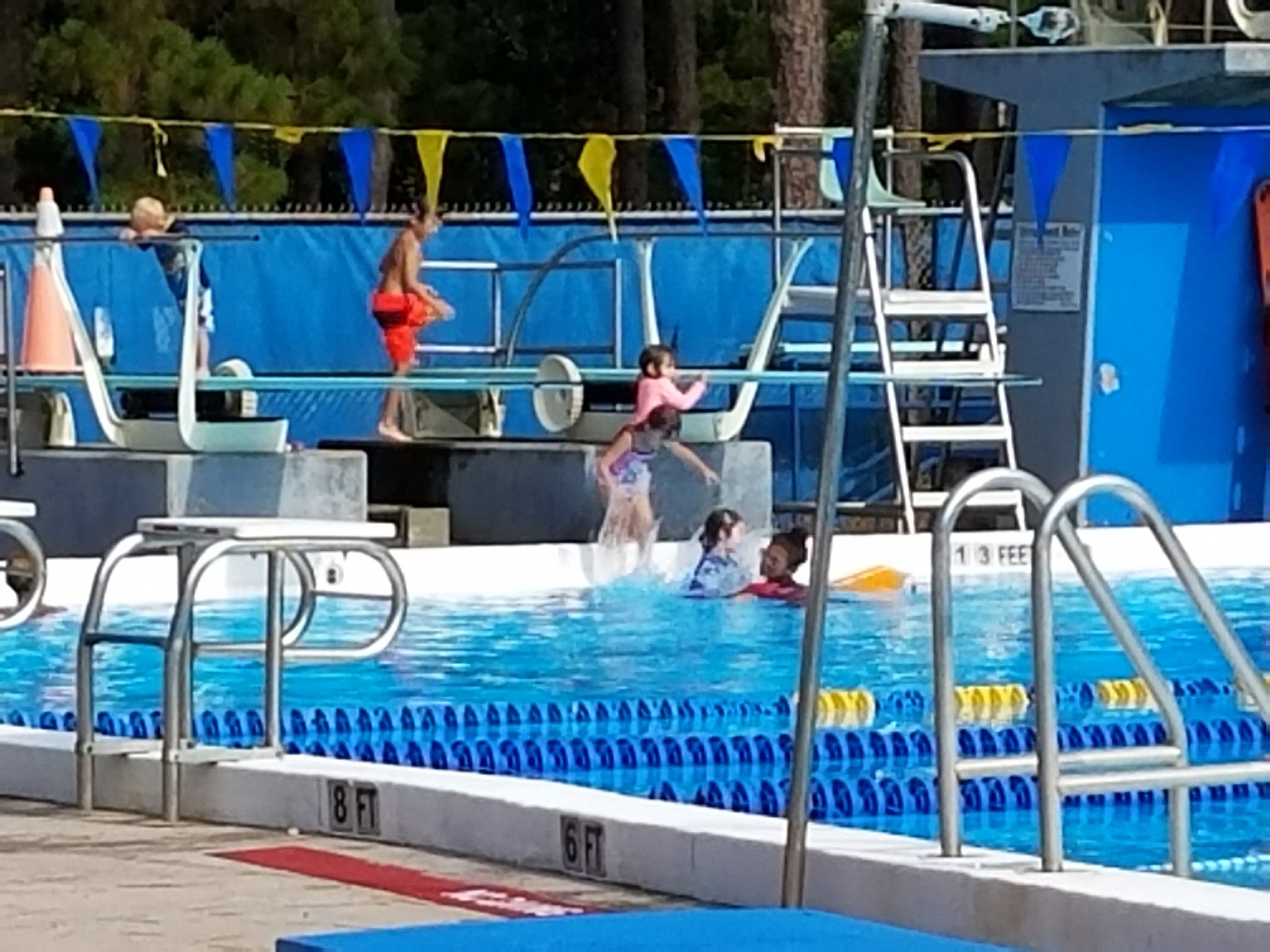 Amazing pool. Water is clean, cool, and refreshing, but not frigid. The slide is actually extremely fun, and taller than it looks. It wasn’t that busy when I went, so it was really easy to find a pool chair right in the sun. I was pleasantly surprised the place wasn’t crawling with children, since it’s right across the street from a school. This pool is perfect for kids as well as adults who want to swim in shallow and deep water. I’ll be coming back for sure!!