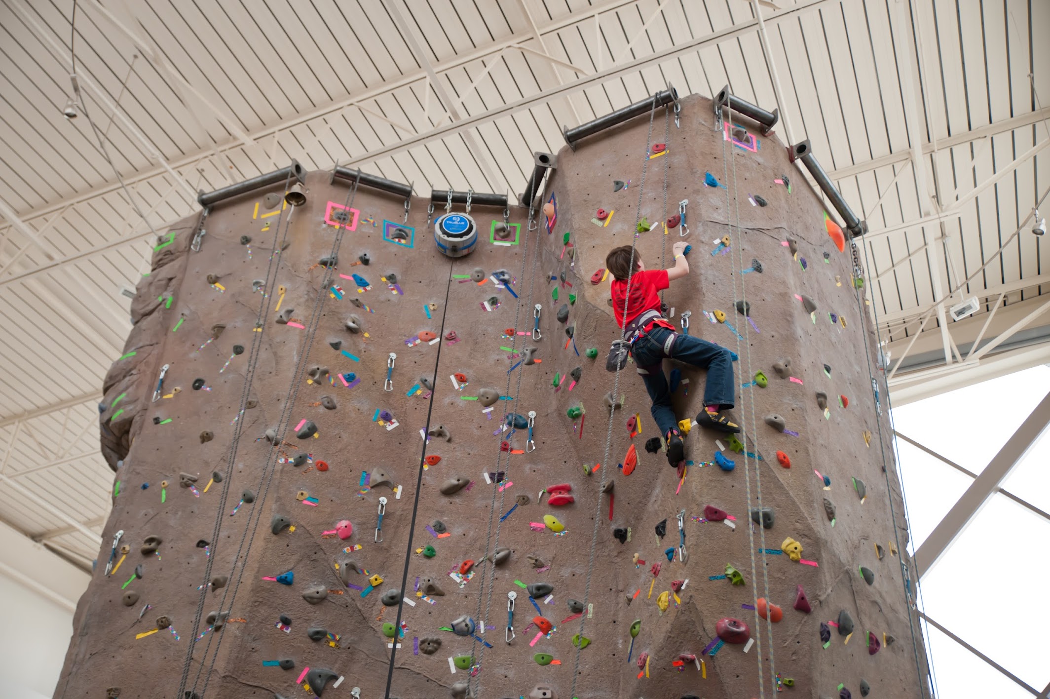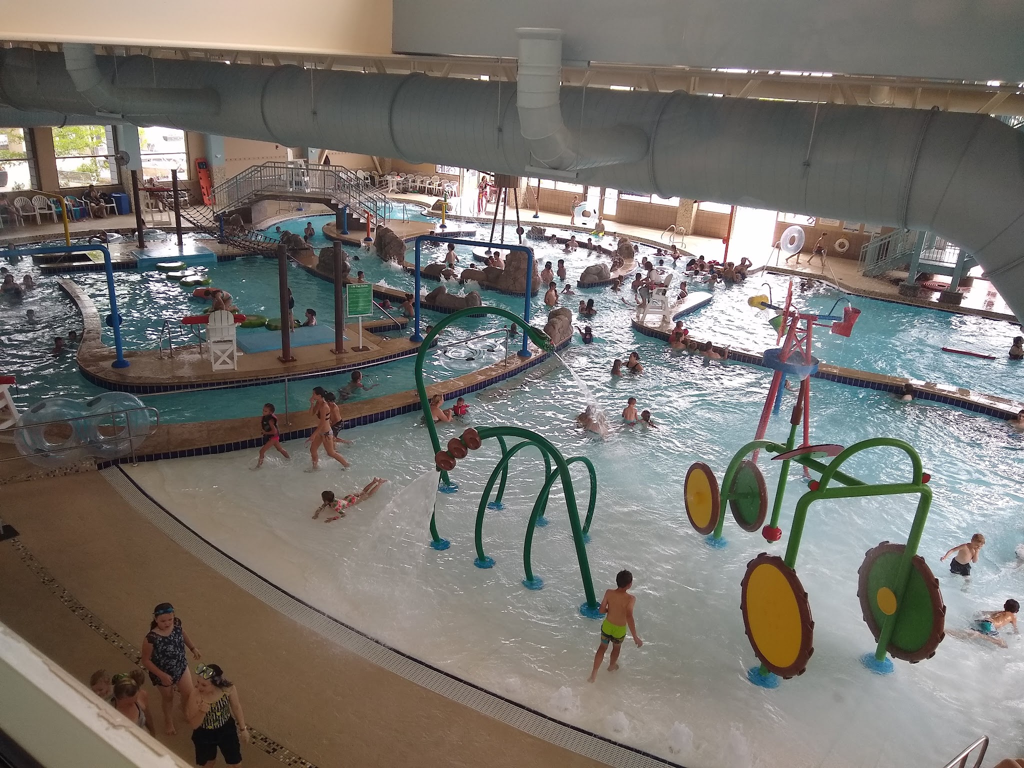 Indoor water park, plus a gym with a rock wall and basketball courts.