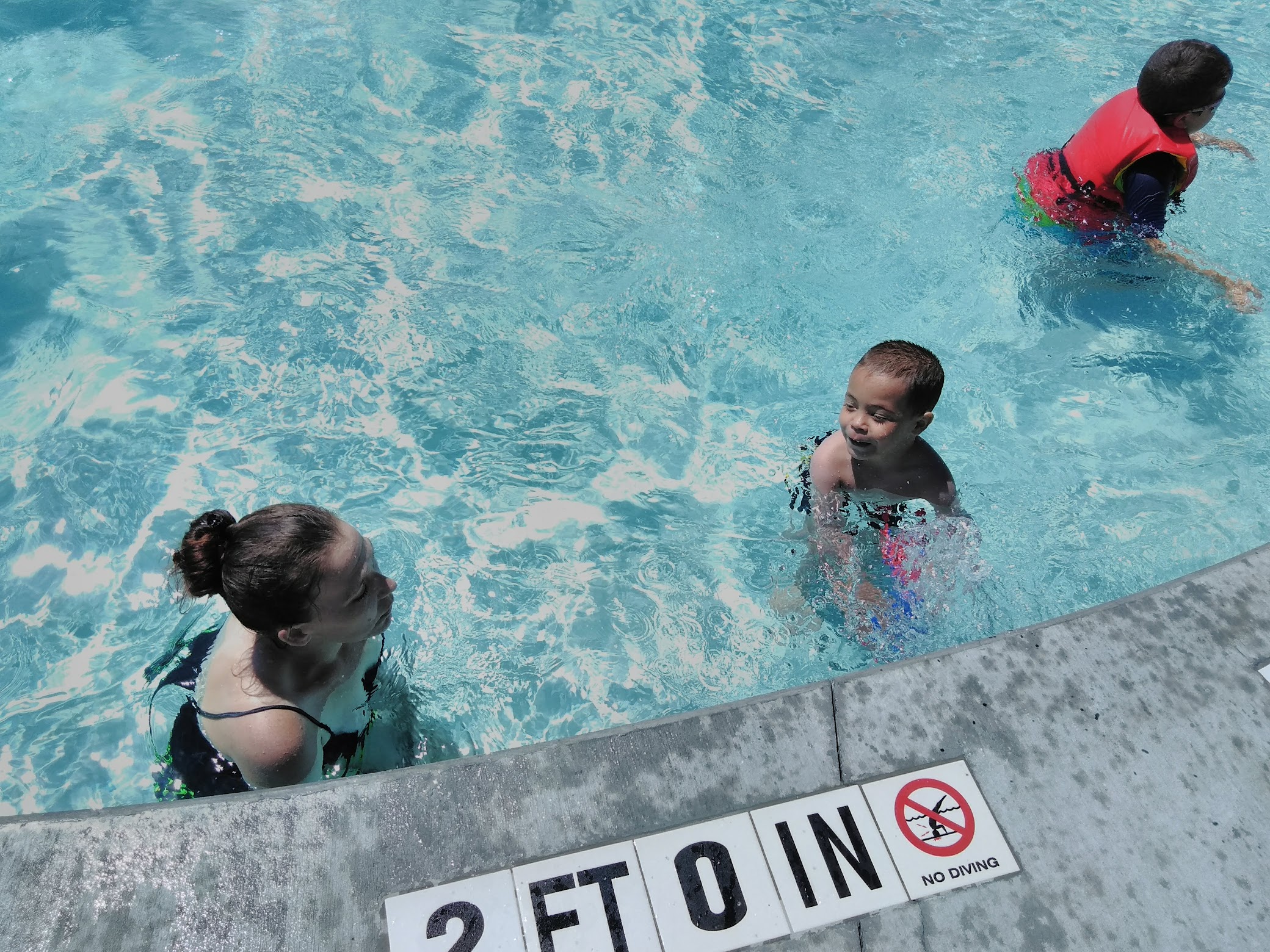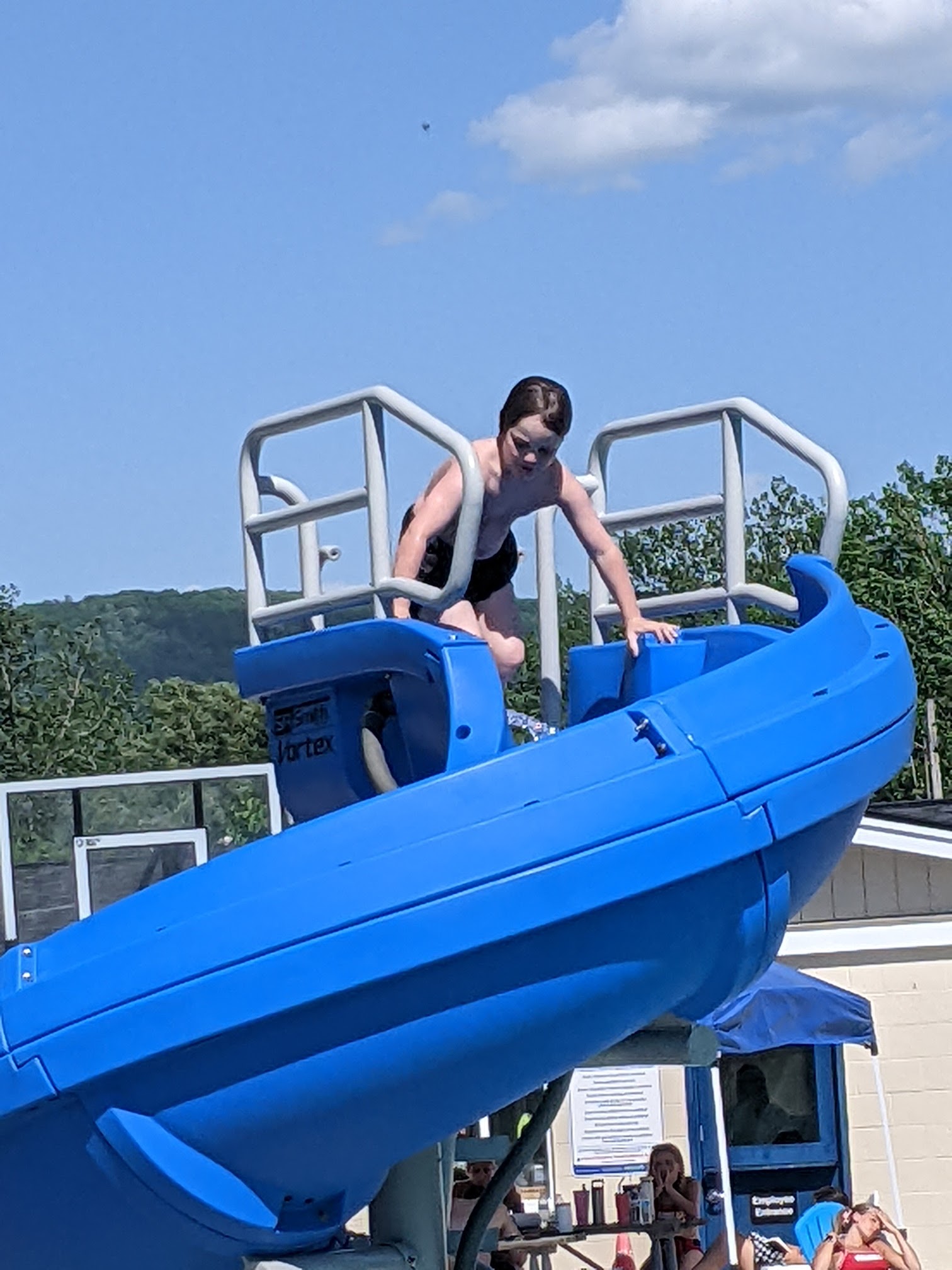 They have a floaty for kids which made her feel more secure. The slide is very fast and fun which I don't recommend for kids. I went in so fast I got water up my nose. They also have a playground. The only downside is not enough chairs.