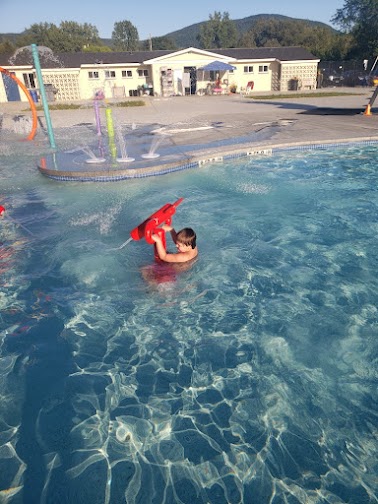 What are people saying (AI review summary)? This facility is praised for its impressive upgrades, perfect water temperature, and attentive lifeguards, creating a fun, family-friendly atmosphere that evokes nostalgia for many. It's noted for being busy but not unpleasantly so, offering amenities like a fast slide, playground, and floaties for kids. However, some visitors find the $5 per person entry fee a bit pricey and there's a common complaint about a shortage of chairs. The facility typically closes late August.