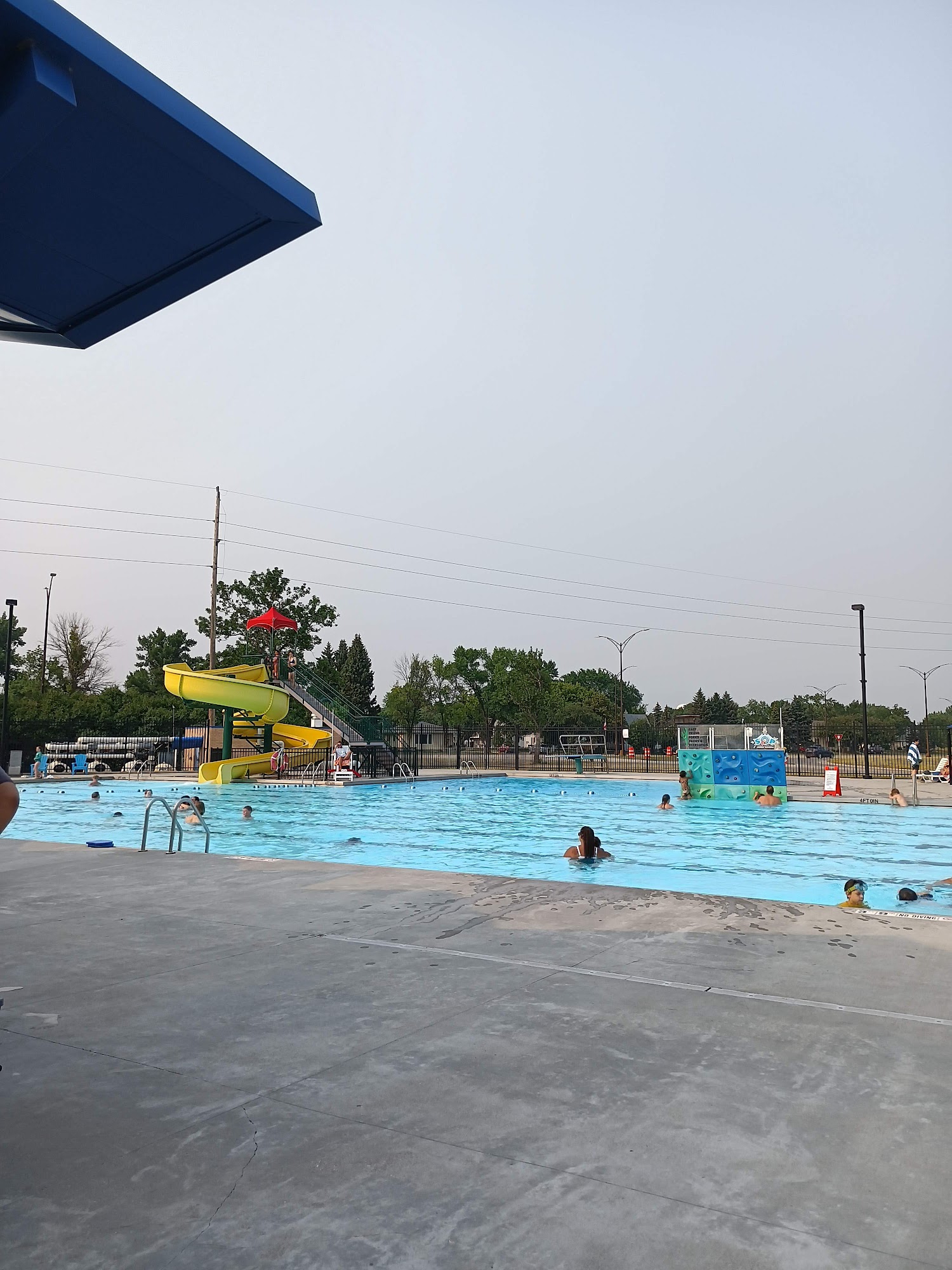 What are people saying (AI review summary)? Reviewers consistently praise the pool, highlighting its great features like the baby pool, waterslide, and rock wall, along with the friendly and watchful staff and lifeguards. Many found it a beautiful day for fun in the sun and a great overall experience. However, common suggestions for improvement include adding more shade areas and addressing the maintenance and monitoring of locker rooms, which some observed to be subject to vandalism by children.