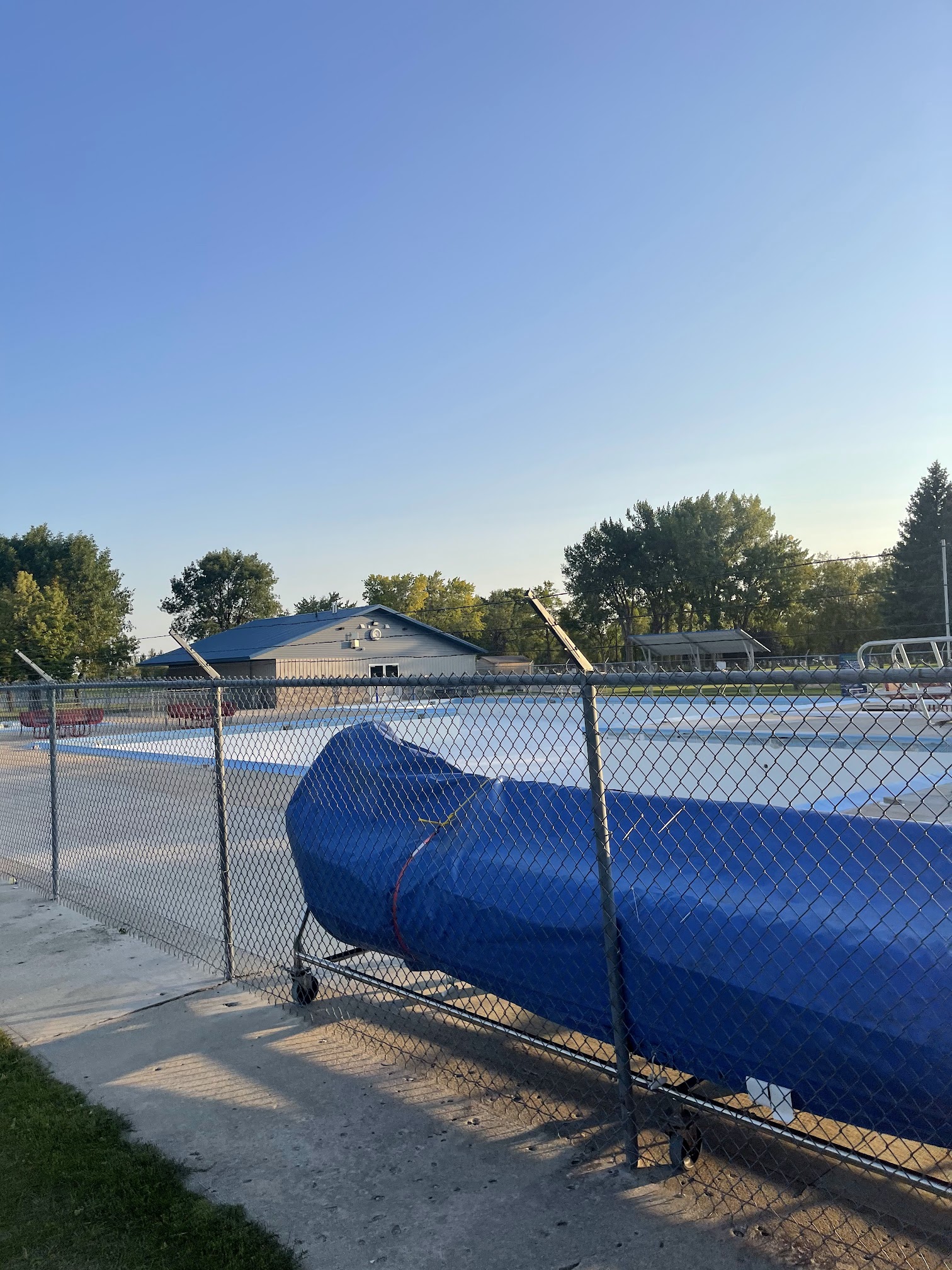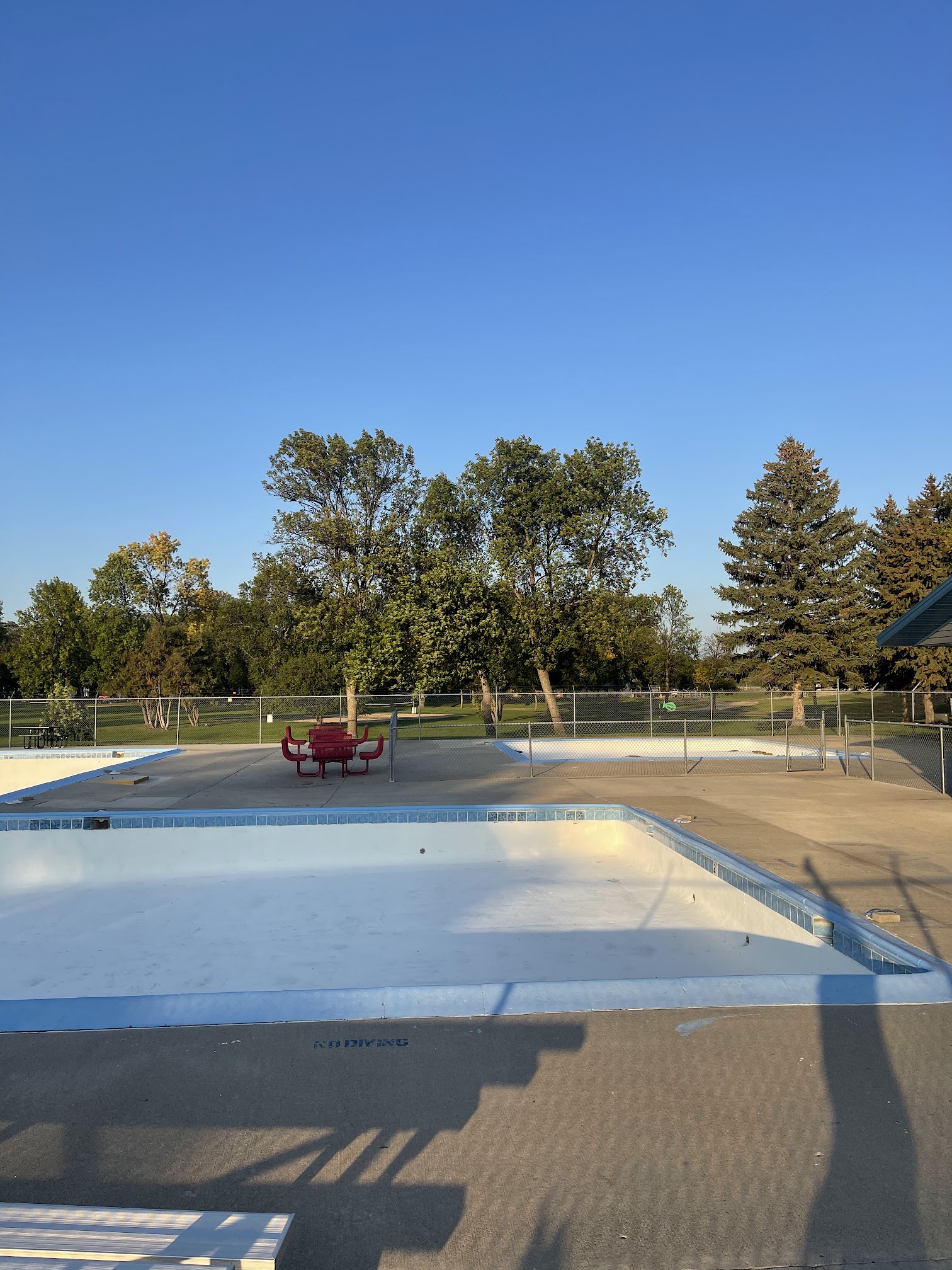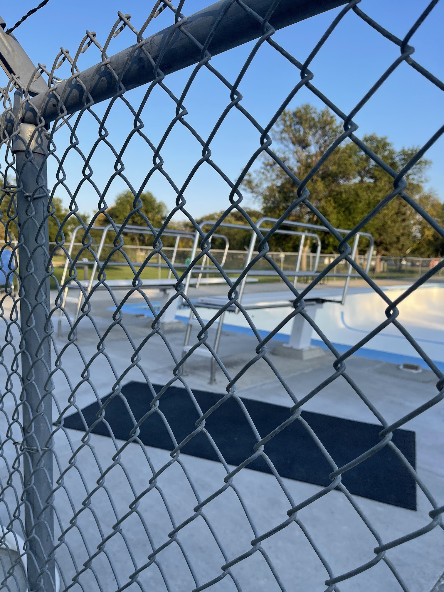 So it looks like this place is a very nice pool. They have 2. One looks like a 2ft deep pool for little kids and the other goes from 3ft down to 10 or 12. Unfortunately it is not open right now probably due to the time of year we are here. But has two diving boards and a beautiful park that it sits in. So I would love to give it a try when it opens. It also looks like they are doing a bunch of maintenance and repairs as well to it