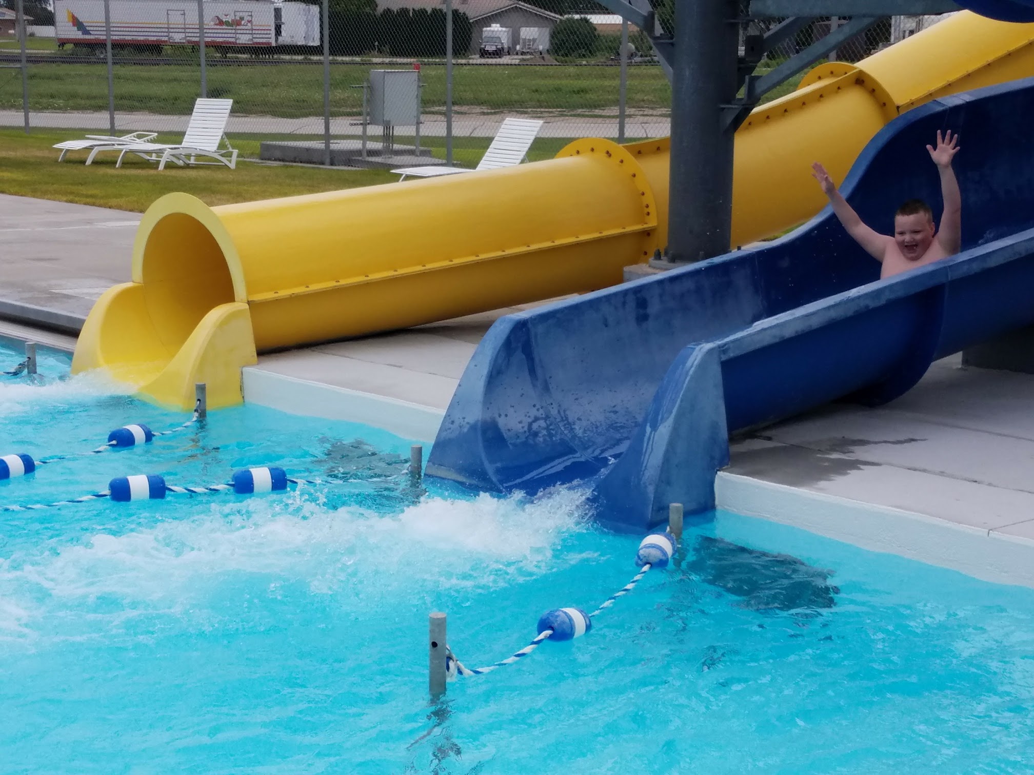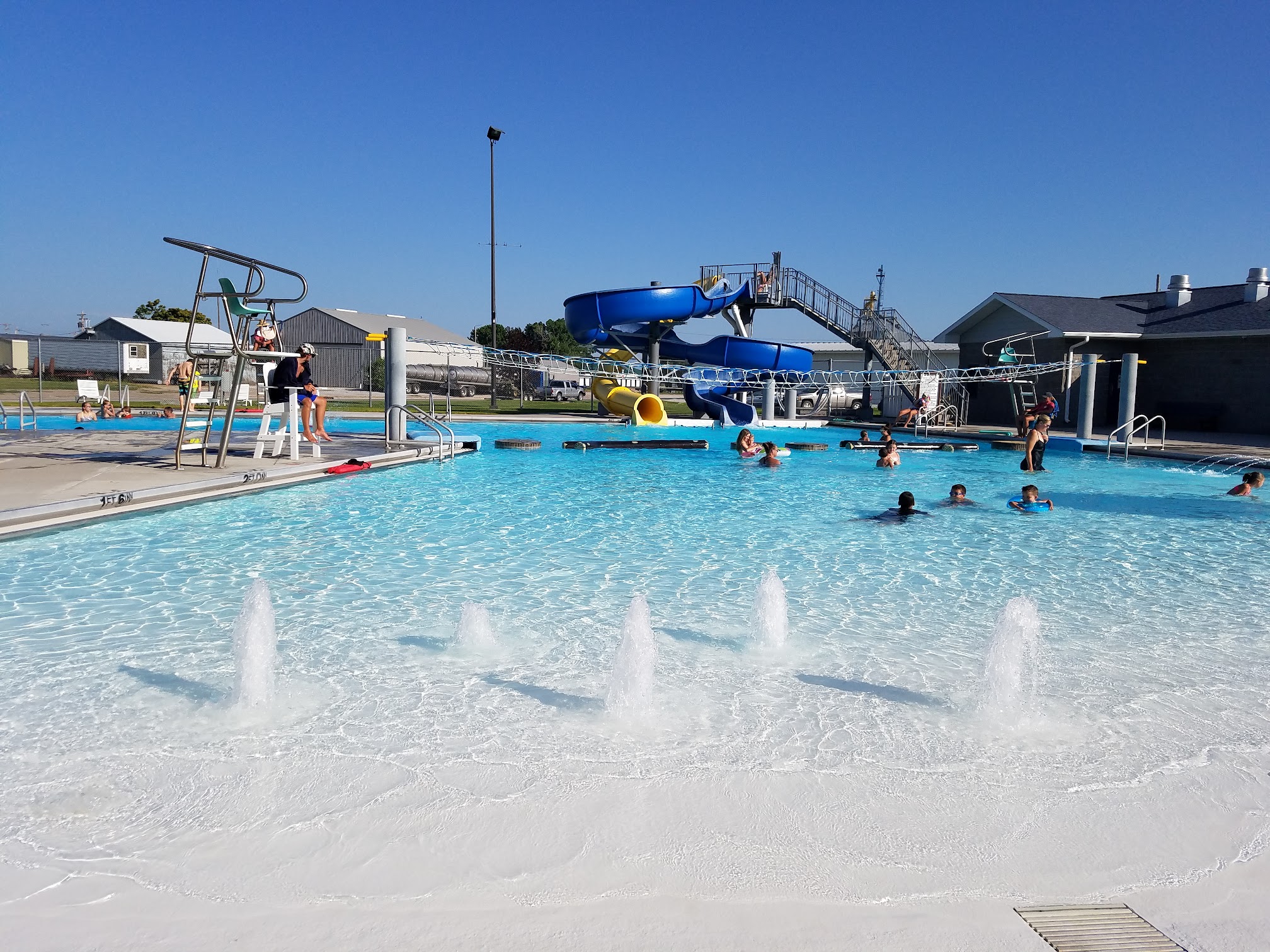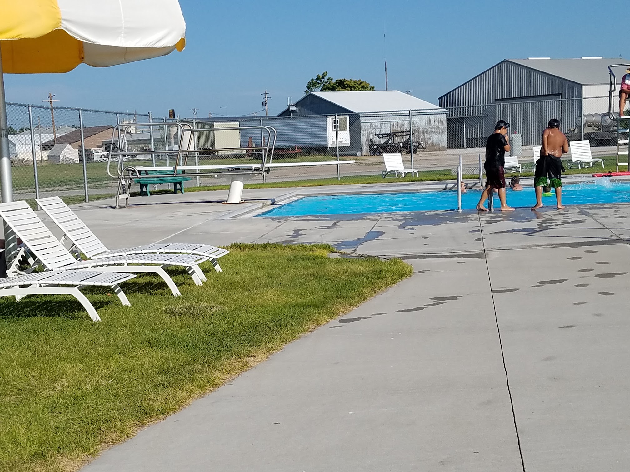 It is a Small town so it is a small pool but it is amazing what it has to offer. The staff are friendly, the people in town are great, so its small town atmosphere with all the fun of a water slide and water logs, diving board, snack bar, Everything you need to have a great summer day. (fabulous prices too!)