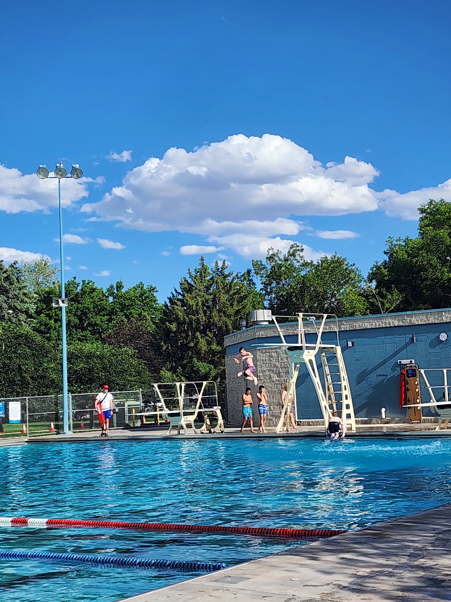 What are people saying (AI review summary)? The reviews generally describe a great neighborhood pool with many amenities for families, including a big slide, splash pad (often free for little ones), diving boards, and lap lanes. Patrons appreciate the ample lifeguards, shaded areas with tables, and the allowance of outside food and drink. Swim lessons are noted as consistent and effective. However, some common criticisms include the facility being a bit dated, and that it can get chaotic and difficult to track children when busy, especially on free admission days. A significant safety concern was raised regarding an unsupervised toddler, with a lifeguard stating their role is to watch the water, not to supervise individual children, advising patrons to alert a manager for such issues.