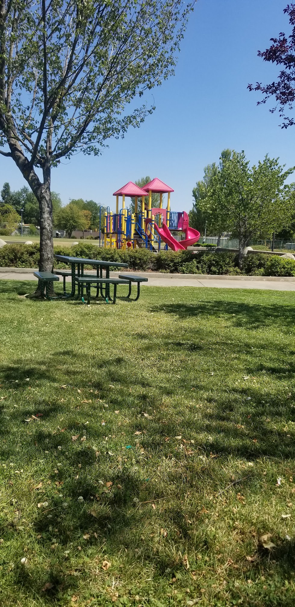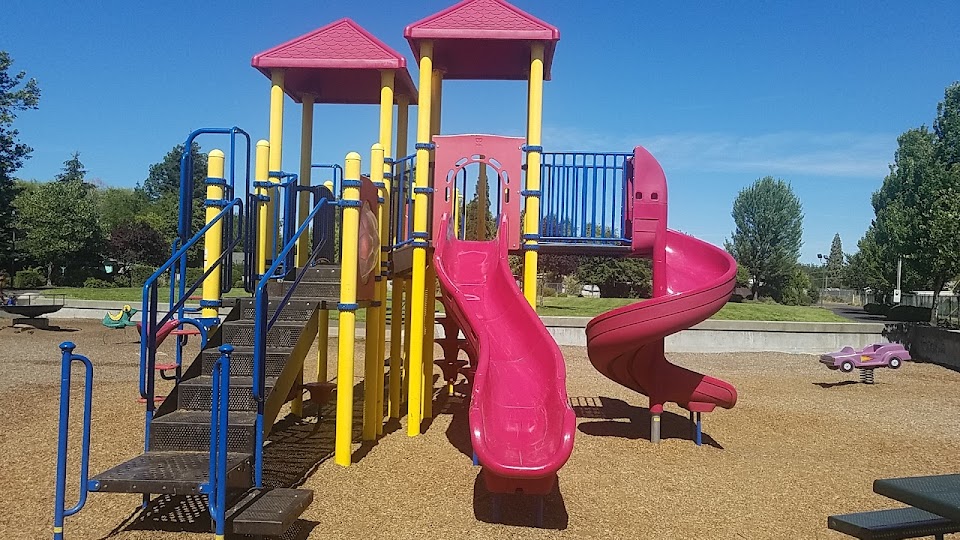 Small but nice little park easy to find from the road. Great for a little play Pit Stop. Has a small restroom, water fountain splash pad and play structure. Multiple tables and a large open grass field great for a quick picnic. On-street parking. Free parking. Right next to the White City skatepark and the Cascade community pool. Trees provide some shade. Downside is the limited parking.
