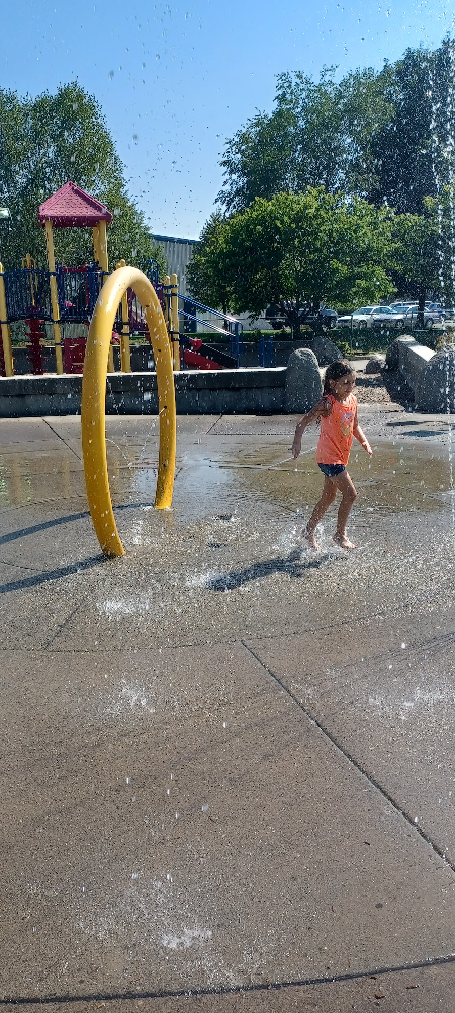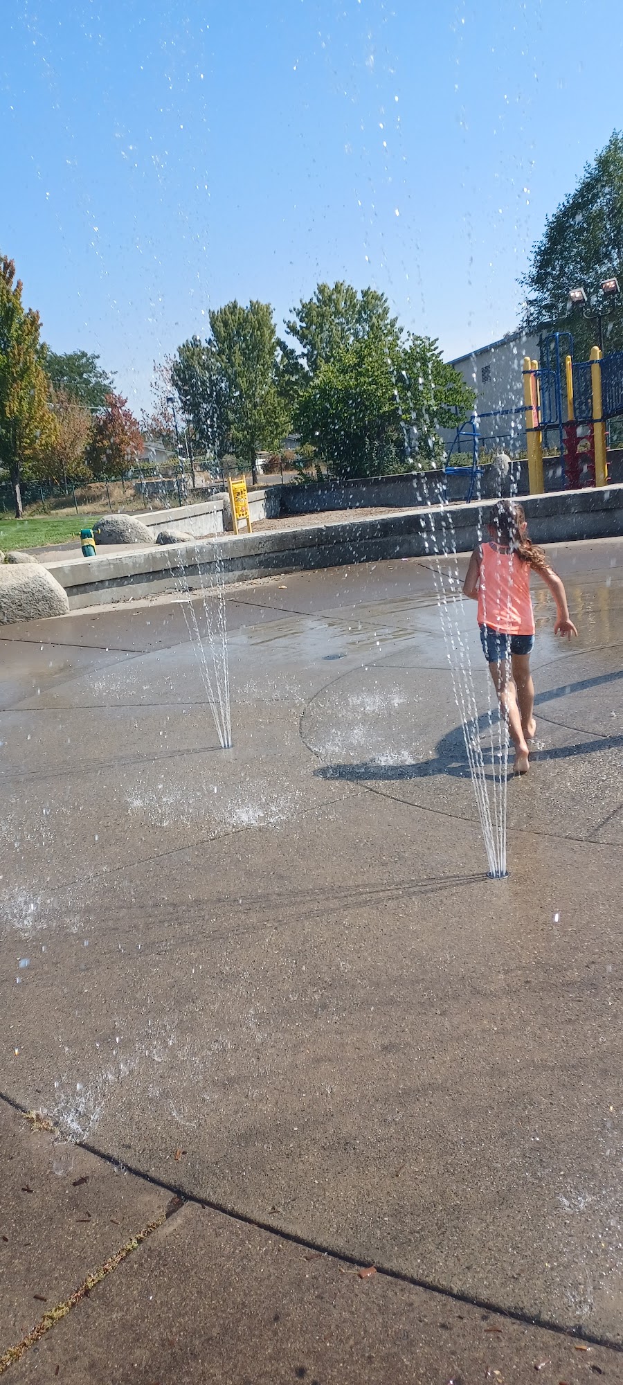 Was full of tweekers That keep coming up to my grandkids and talking/ touching them when asked nicely to stay away from our children (ages 9,7,4,and 18 months) they got rude and started threatening us so we finally just left very disappointing my grandkids loved the park/ water feature 😥😥😥