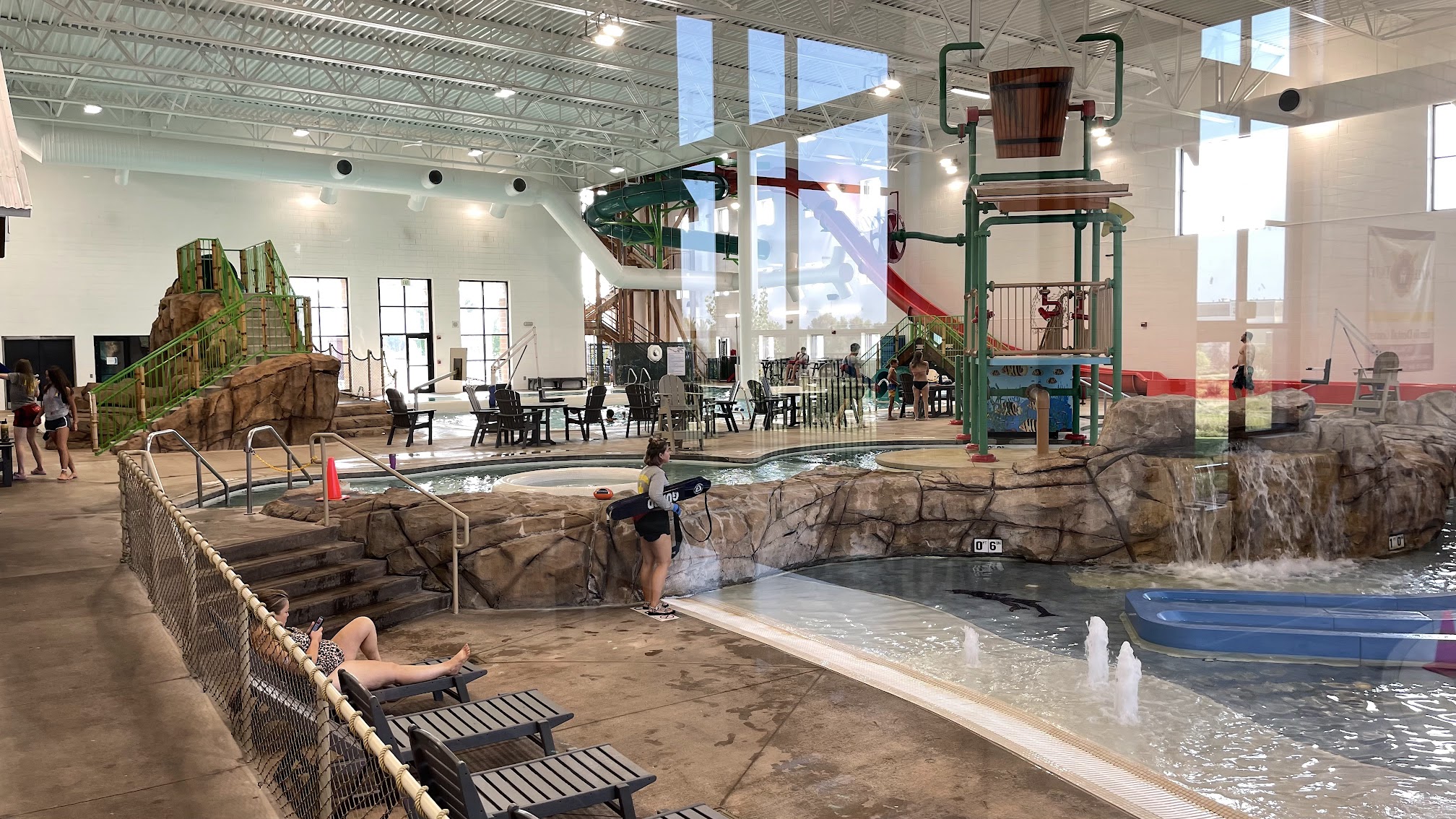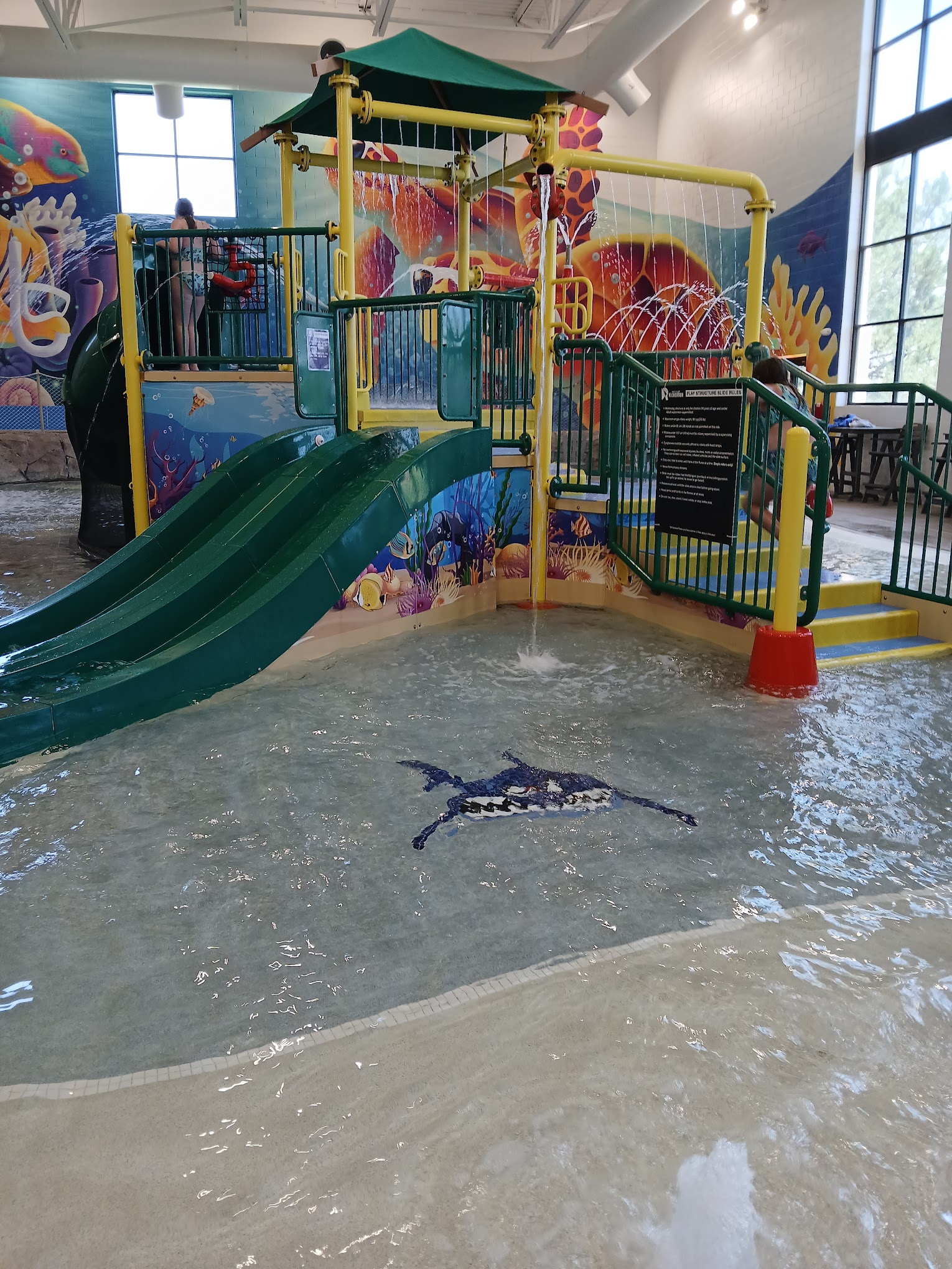 Loved the pool!!!! My kids played for hours. My kids favorite pastime was going ‘round and ‘round in the (not so lazy) lazy river. The kids area was fun. Both big slides were fun, though I found the green twisty slide to scratch my back a bit. The blue slide was super fun. There’s one plunge slide that was closed, and a passing kid and said it’s open sometimes for swim lessons and on some other random occasions (I can’t verify that). Pool area hours were 12-8pm, which is a nice block of time compared to other indoor rec pools. We went on a Friday when schools were out, and it wasn’t too crowded. The pool closed for the last 10 minutes of every hour for adult swim like a normal rec pool would do. Would definitely return, and overall I thought it was much better than many of the reviews insinuate.