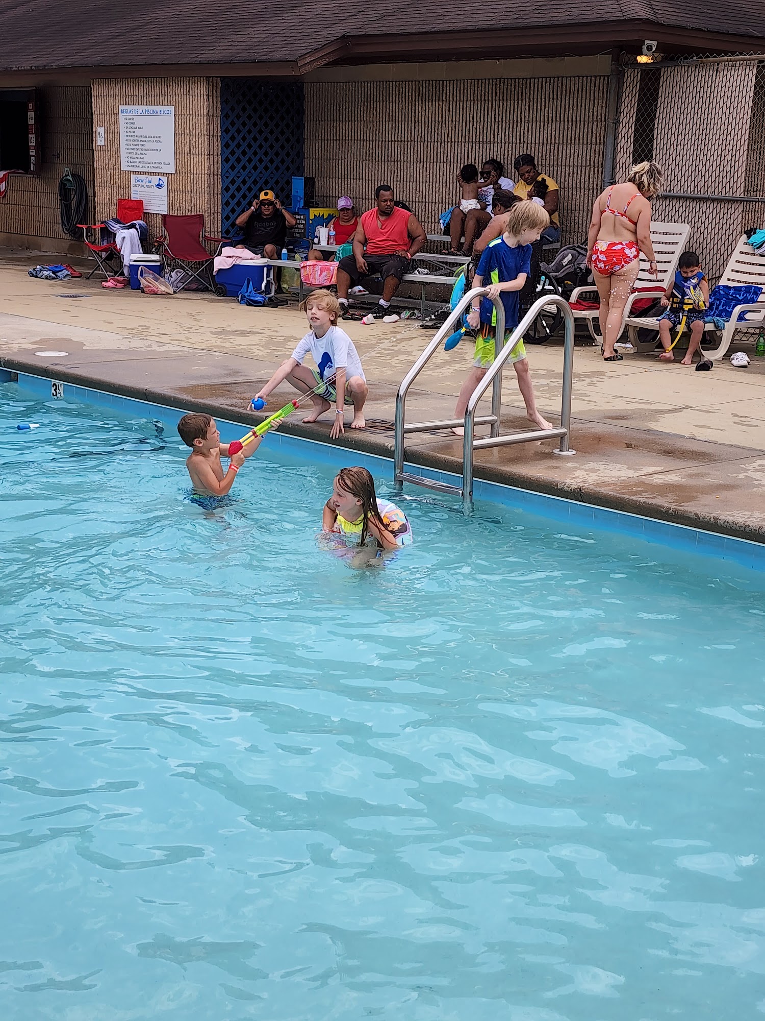 My daughter, two grand daughters and I spent the morning at the pool! We had an awesome time there! There are life guards on duty and once every hour they blow a whistle for every one to get out of the pool and take a little break and relax. I will definitely be going again.