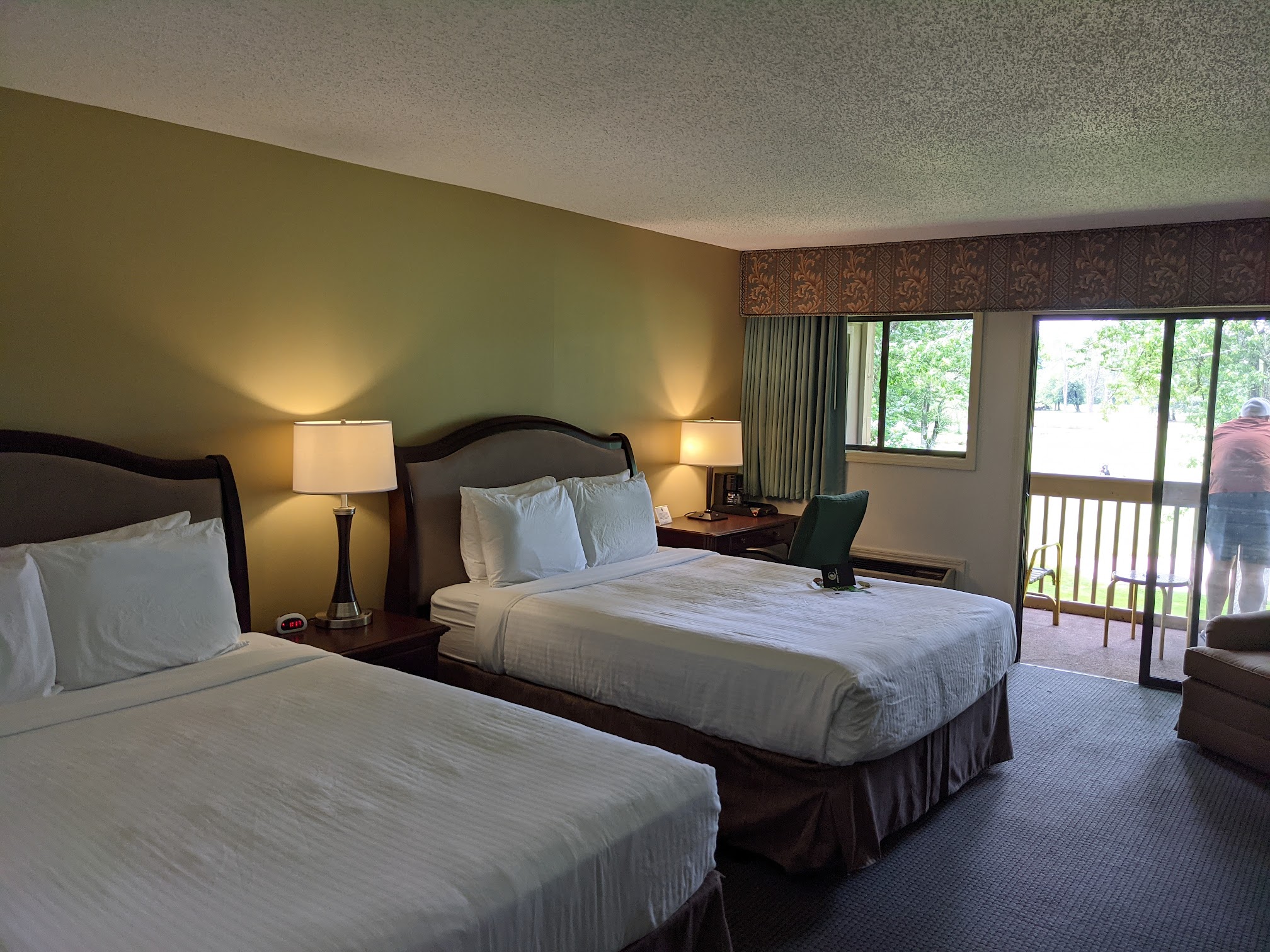 We loved our stay! We stayed in 2 connecting rooms. We are avid golfers and played 18 holes both days. Loved the access to the tavern to grab a drink and some food after playing 9 holes. Golf courses are beautiful and competitive! Everything was very convenient, pro shop to get balls to hit before our tee time was a nice perk and we had to rent a set of golf clubs, they were so accommodating. Loved all the staff in the restaurant, pro shop, and on the golf course. They made us feel right at home! Really enjoyed our stay and will definitely be back!!