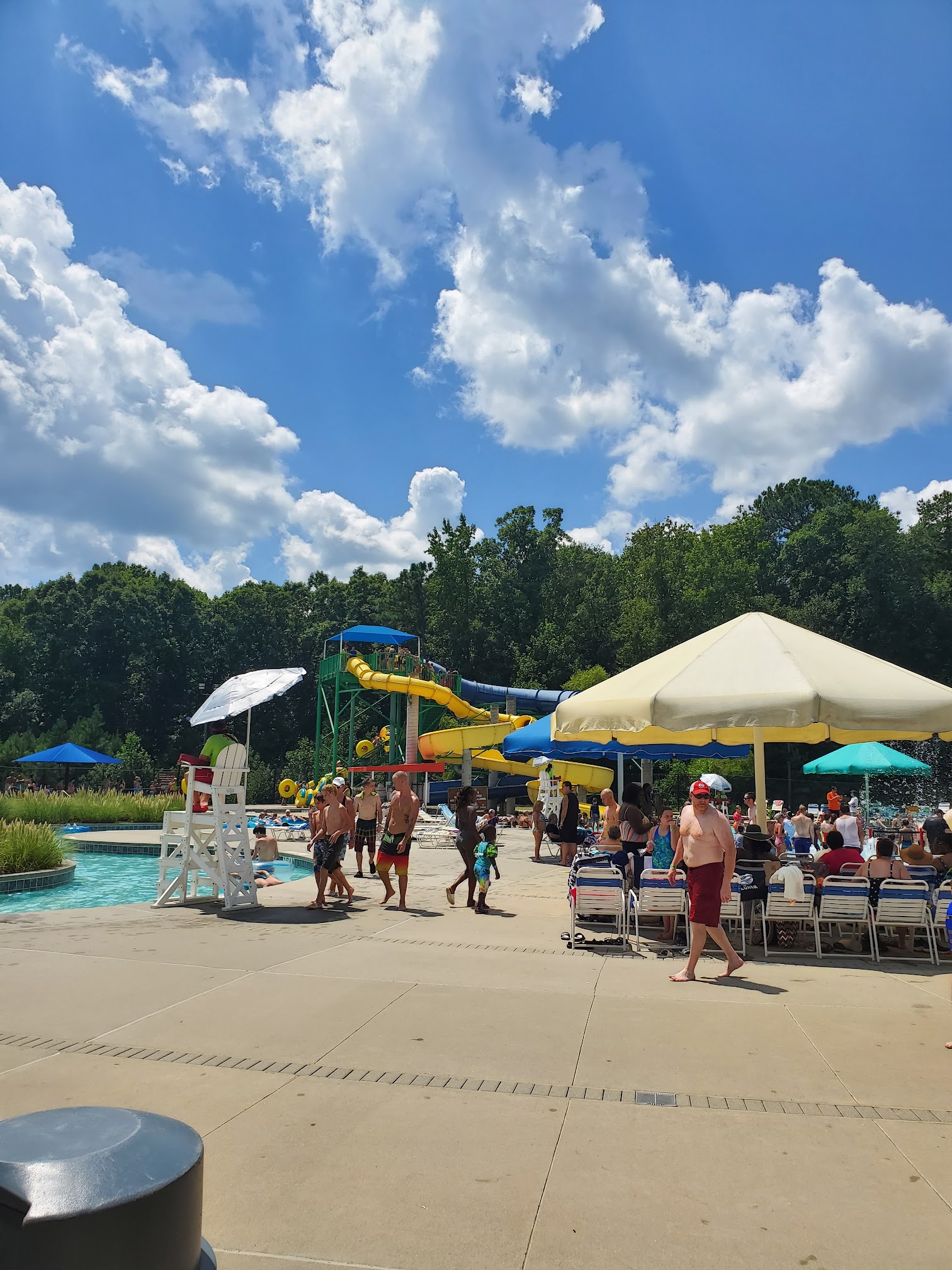 Our family went on a Tuesday during a heat index advisory right at opening. We waited in line for about 15 minutes and fortunately it was shaded. There are not many shaded spaces like I've experienced at Otter Creek, but we managed to find a spot before they were all taken. The lazy river was fun and the kids didn't wait too long to be able to use the slides. The wave rider wasn't as exciting as my 13 year old was hoping, but it seemed like a cool option. There were no changing rooms, so changing in the bathroom was not as fun.