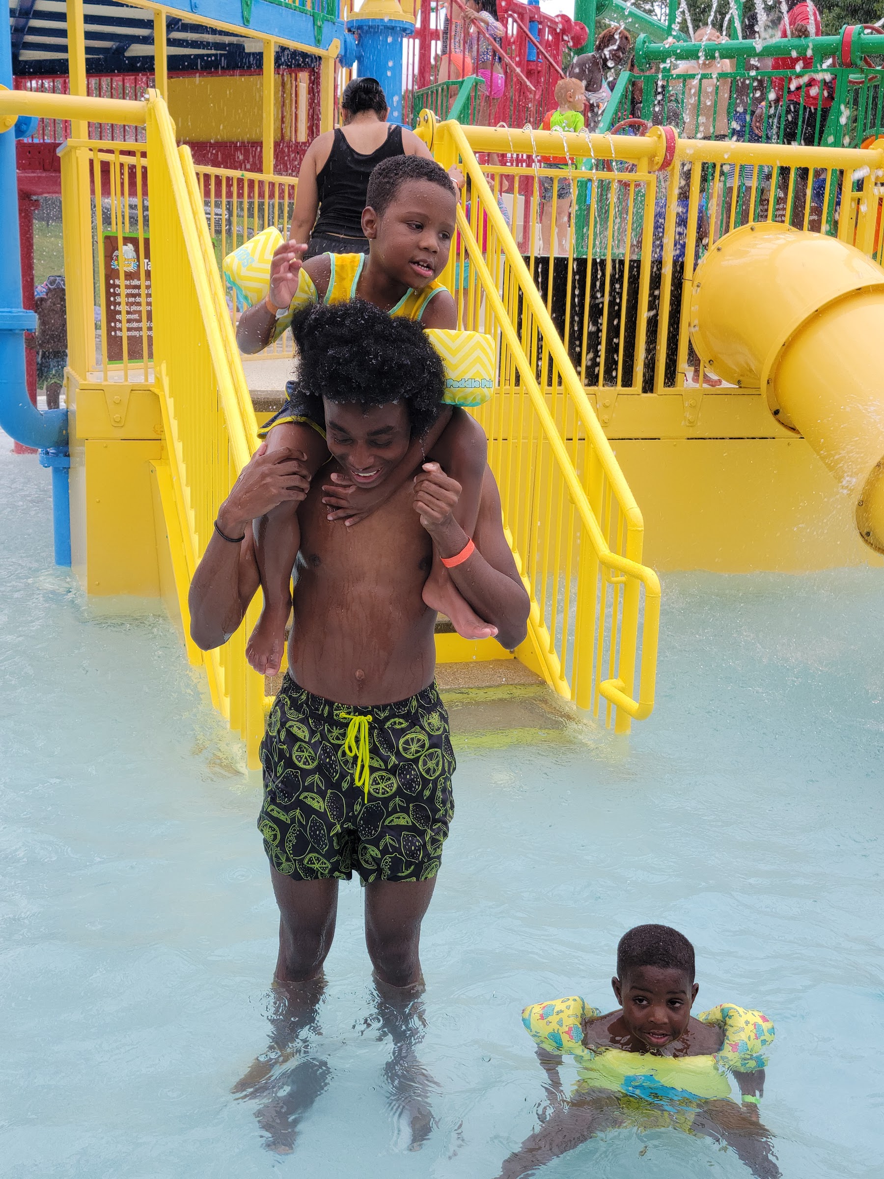 Fun little water park, kids really loved it. Ended up too crowded, long lines and not enough shade. Would recommend they work on putting in a much bigger pool for people to relax and cool off in.