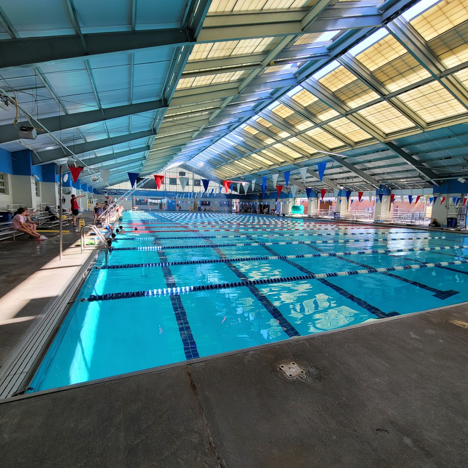 What are people saying (AI review summary)? This swimming facility is highly praised for being a great place for swim meets, exercise, and general swimming. Reviewers consistently highlight the friendly and hardworking staff, including specific coaches like Leah, and commend the pool's cleanliness and good maintenance, noting it's heated in winter. Ample restrooms, showers, and changing areas with lockers are available, along with a Suitmate in the lobby. However, some minor drawbacks include blinding sun from the bleachers mid-morning, limited parking, and the building showing some signs of wear (peeling paint, chipped tiles, intermittent sink issues). Spectators are advised to bring a lawn chair for comfort and dress in layers due to potential temperature variations. Overall, it's considered a highly functional and enjoyable facility, with a strong desire for similar venues in other areas.