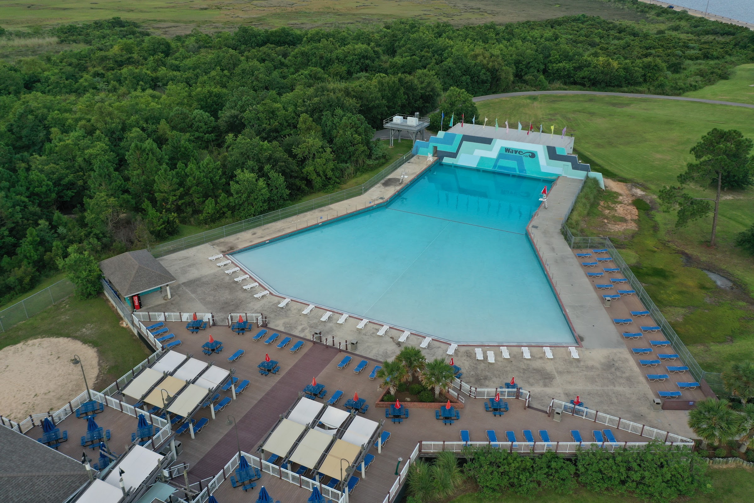 State park destination featuring a wave pool and kids' splash area, plus two slides.