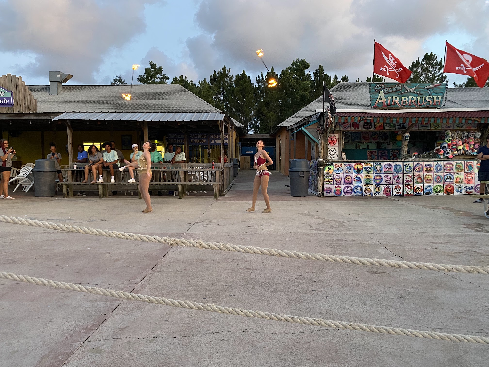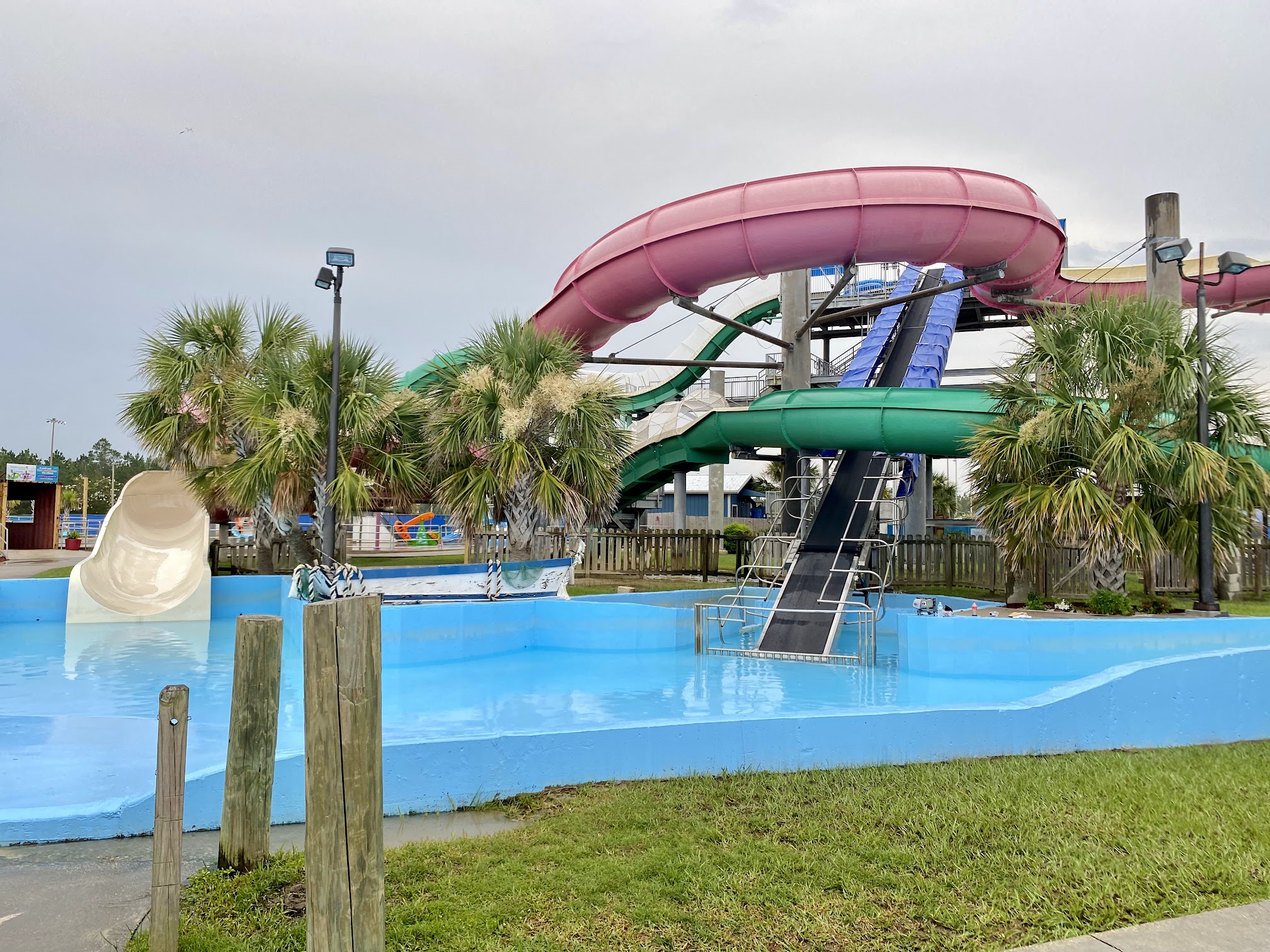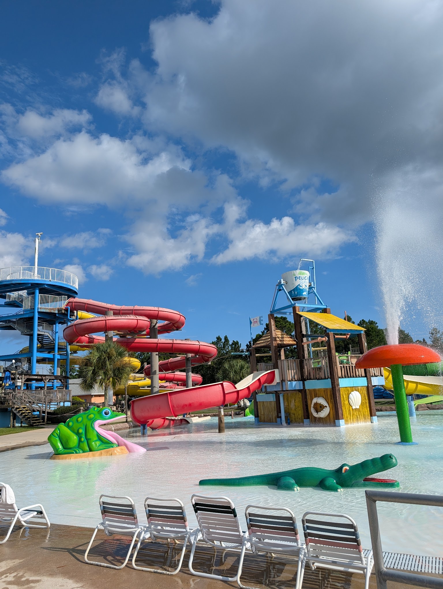 The staff was friendly and helpful. It's a nice size waterpark with decent food options. The free drinks and parking is a plus. I recommend getting there early to get a space with an umbrella. The claim shells aren't really work it. Only 1/2 is shaded.