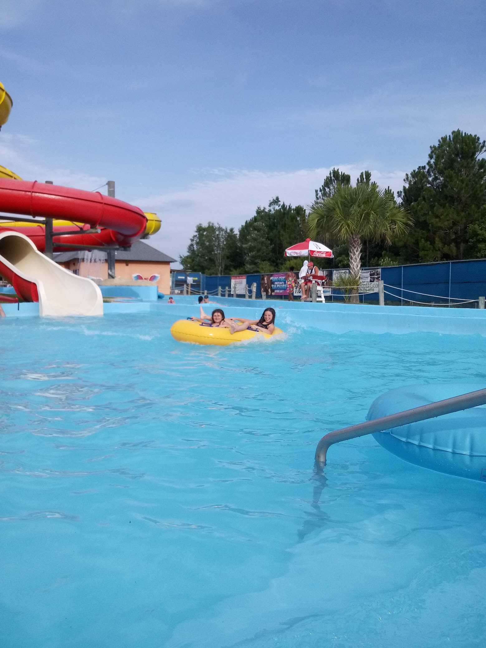 Had great experience. Kids and adults loved it. Circular Lazy River (you can stand in) has multiple entrances and exits. Use rafts for free. In the center wavepool comes on every 20 minutes. Plenty of life guards. Lockers for valuables. Small restaurant for burgers etc... Free drinks!Looks like you can rent a cabana or get there early to snag an umbrella area with chase lounge chairs. Dressing rooms to change. Everything you need for a fun day. Very clean. Will return.
