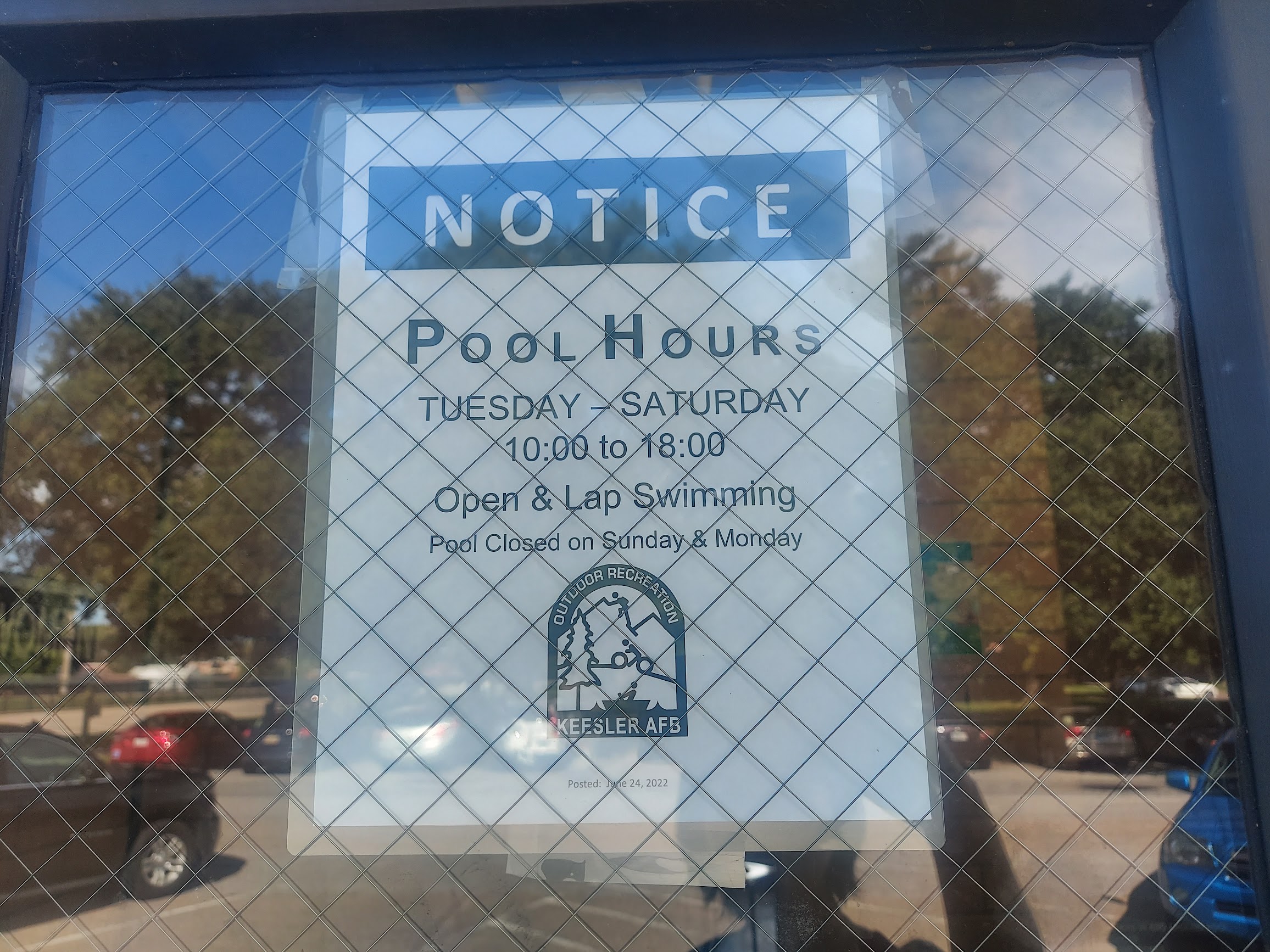 It's a decent pool for training, but not much else due to staffing. They are required to have 2 lifeguards for under 18 and / or under water swimming. Airmen and Guardians under 17 are just out of luck. The hours are also in constant flux, so good luck. 3 star instead of 2 because they work well with the local dive shop, and it's a fantastic place for learning SCUBA, which is why my son and I had went.